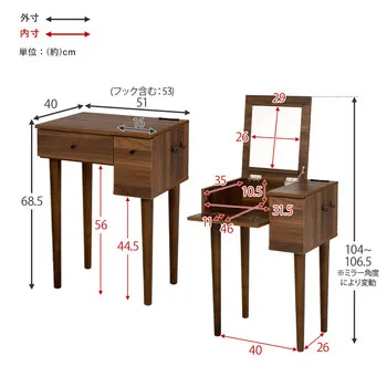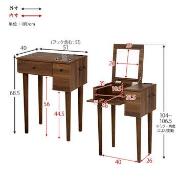 ■本体サイズ:(約)幅53×奥行40×高さ104〜106.5/68.5cm