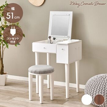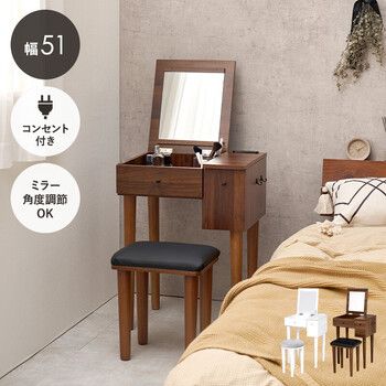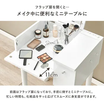 ミラーを閉じるとデスクとして使用可能なドレッサー。