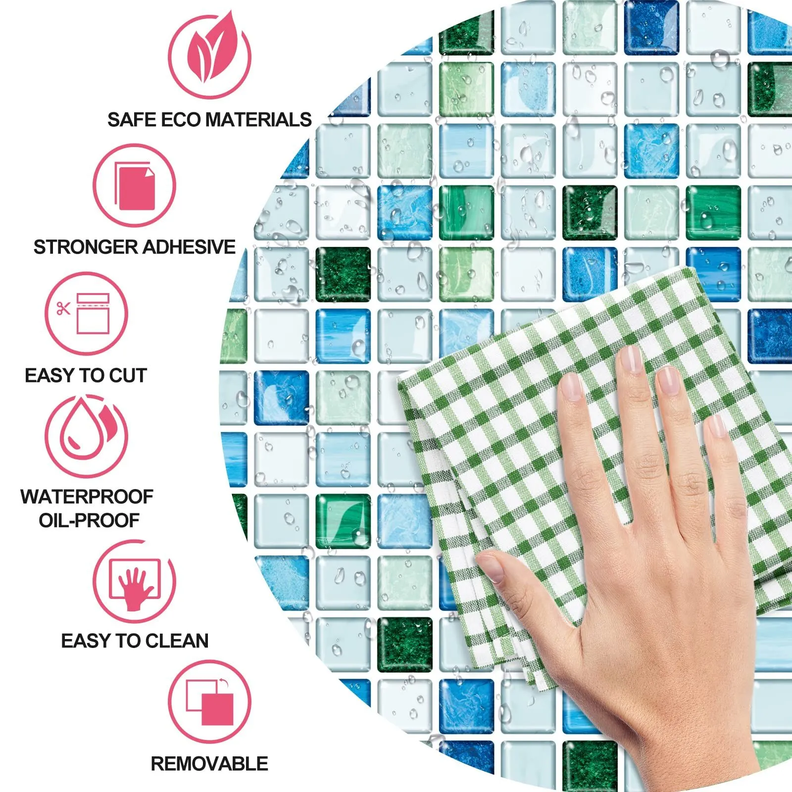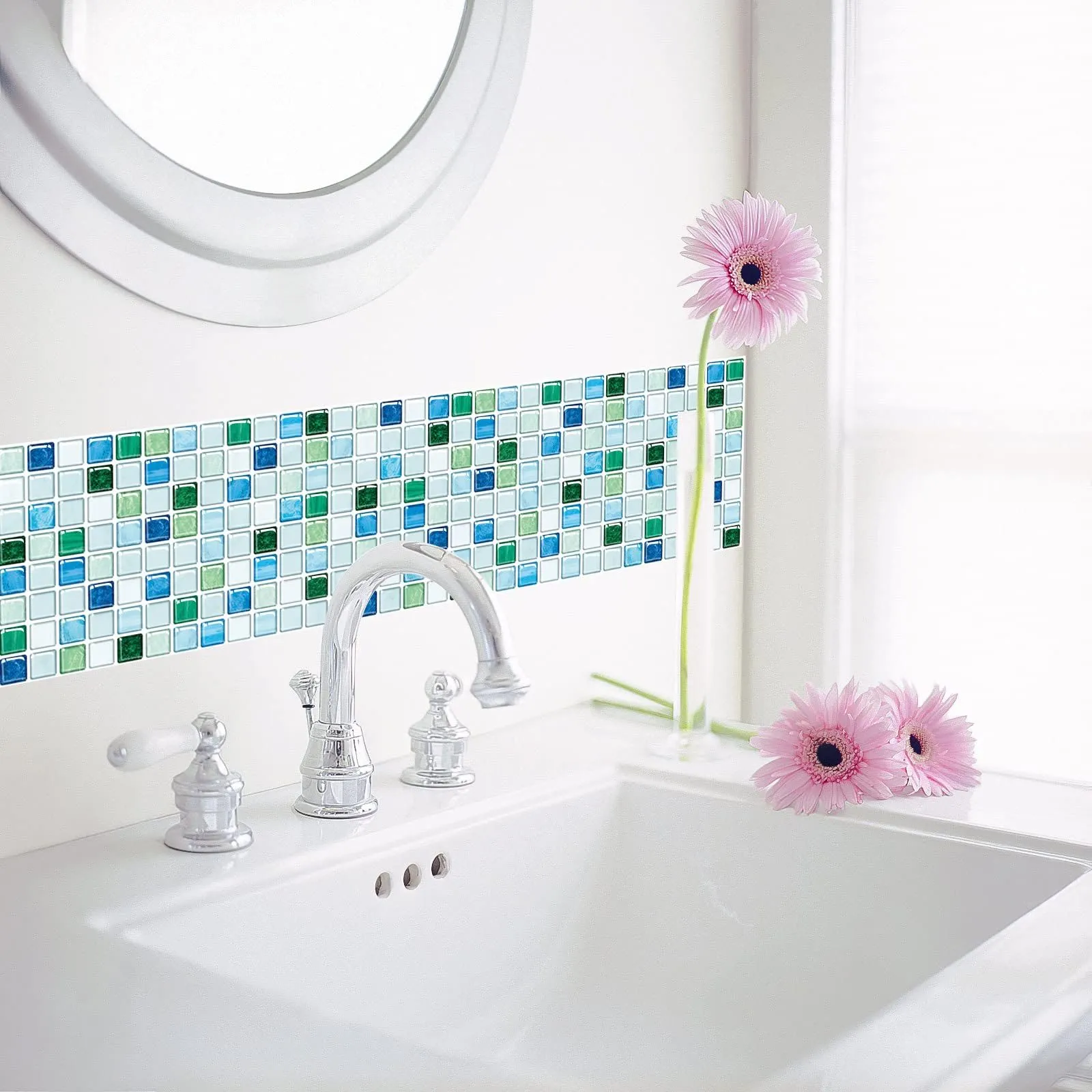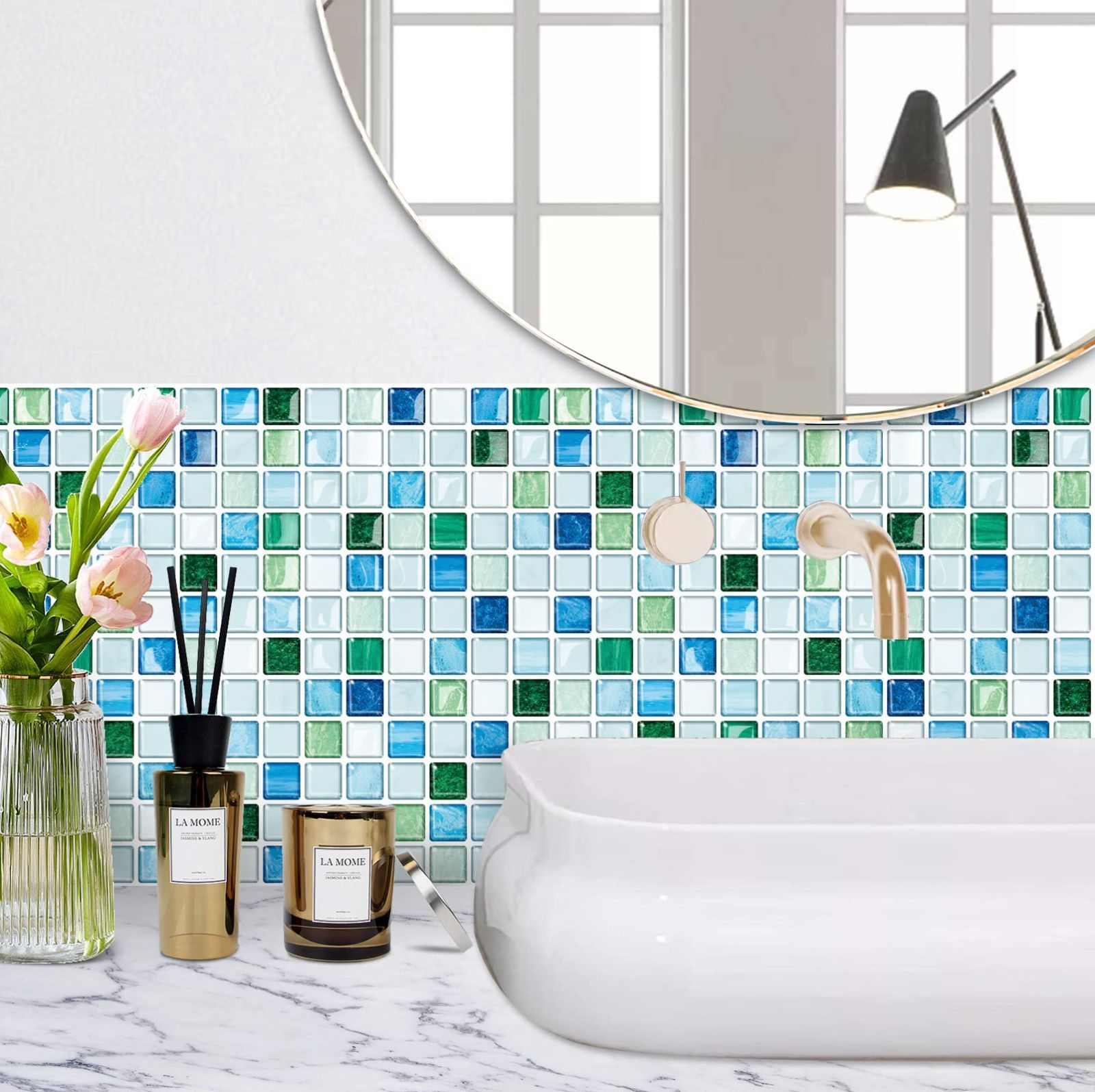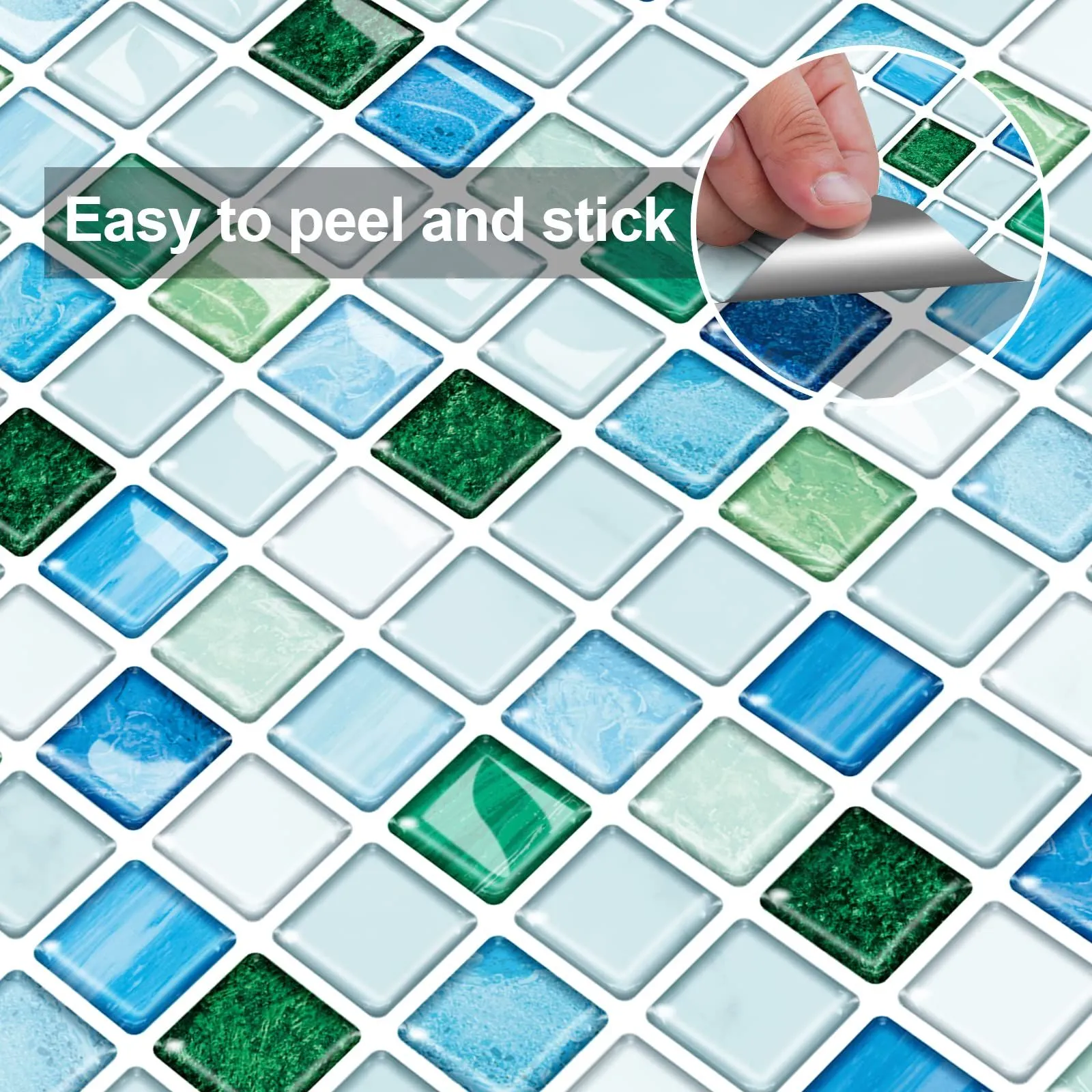 防水 耐熱 キッチン タイルシール 洗面所 トイレ DIY 家具やアイテムの装飾 タイルシート 壁紙シール MORCART 3D リメイクシート (25x25cm 4枚 モザイク・レイクブルー)