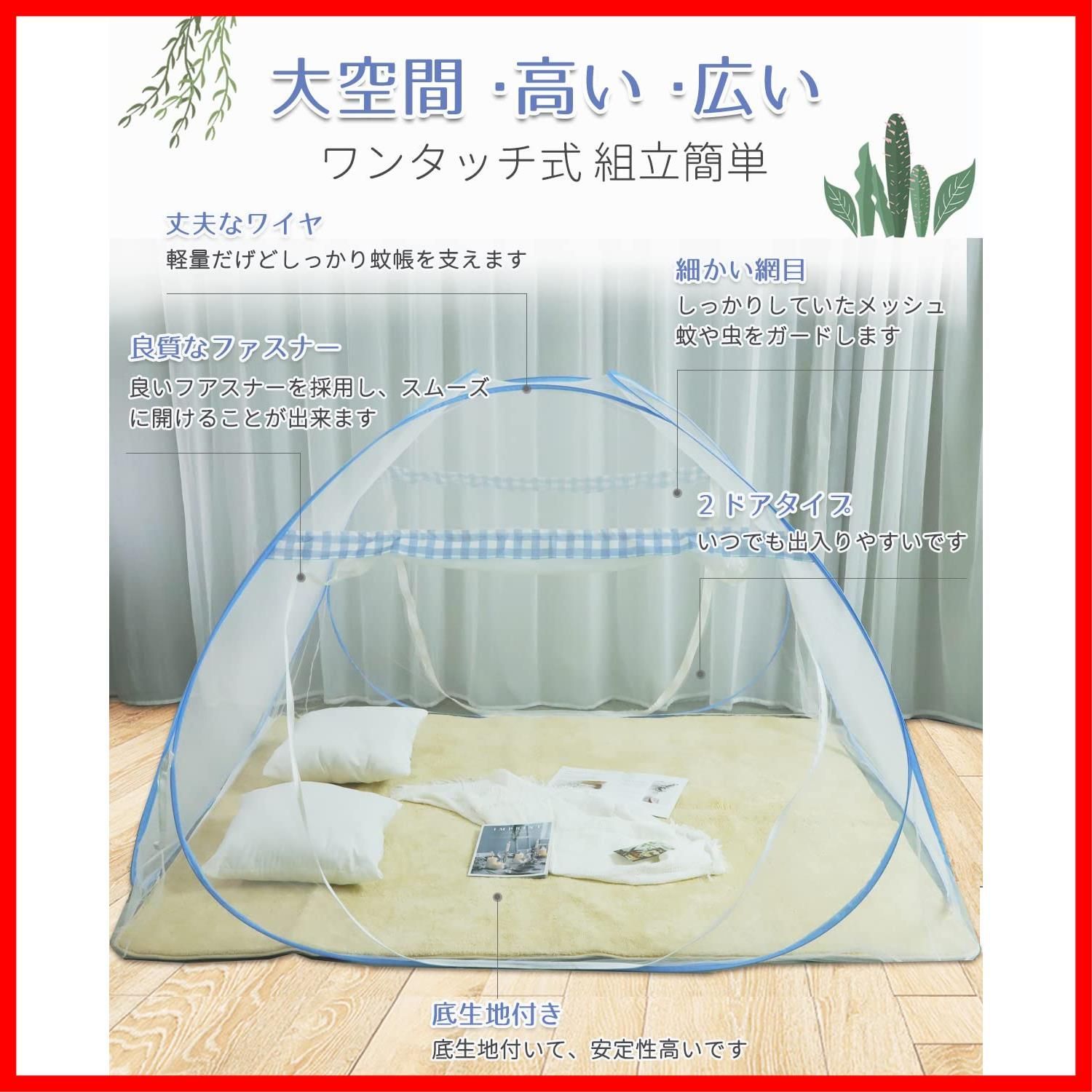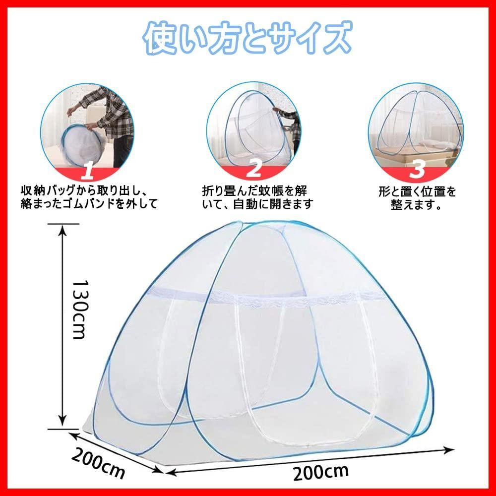 DEWEL 蚊帳 ワンタッチ テント式 幅200cm 底付き 防虫 シングル 折りたたみ可能 収納便利 キャンプ アウトドア ベッド用 ムカデ対策 高密度メッシュ 洗濯可能 ブルー 200x200x130cm