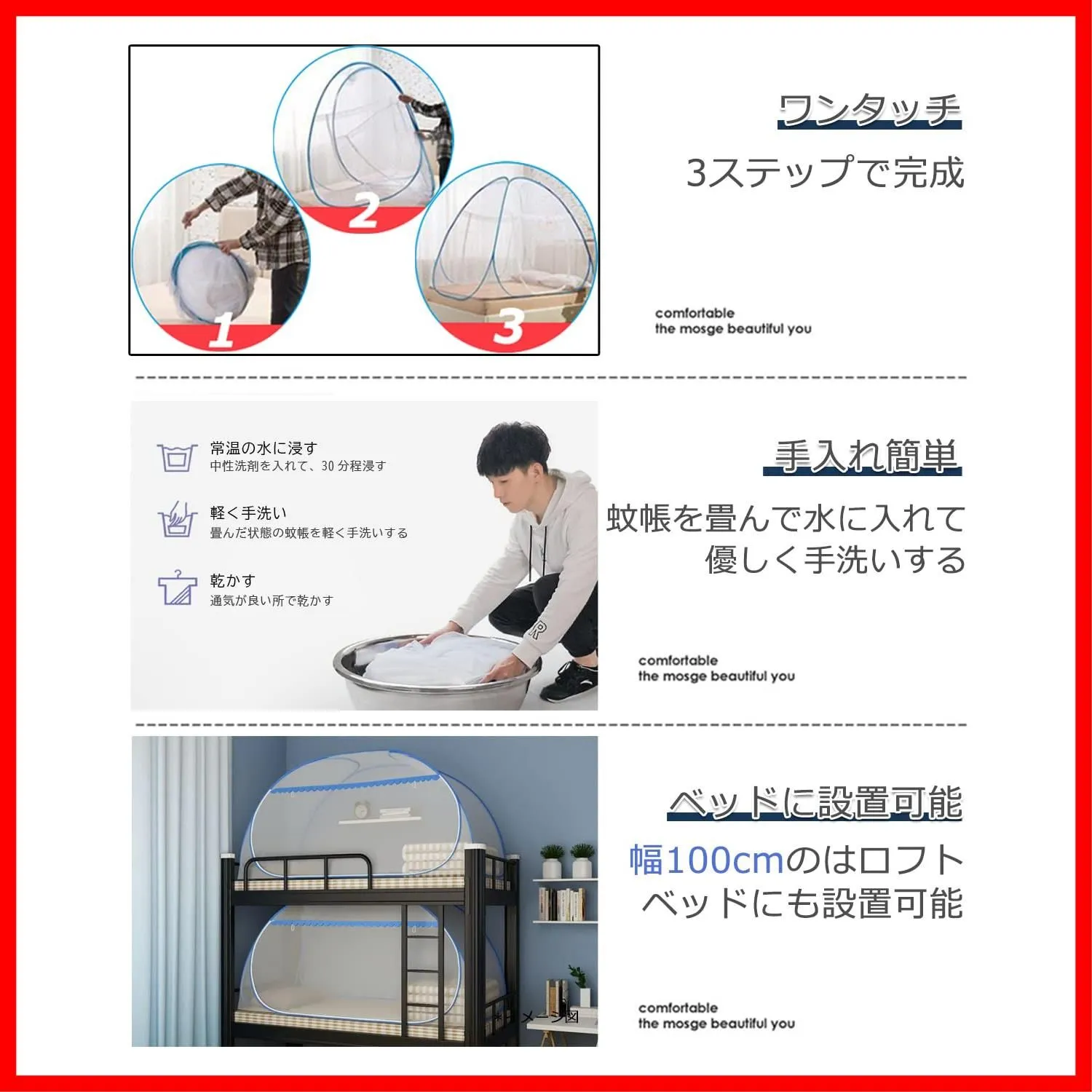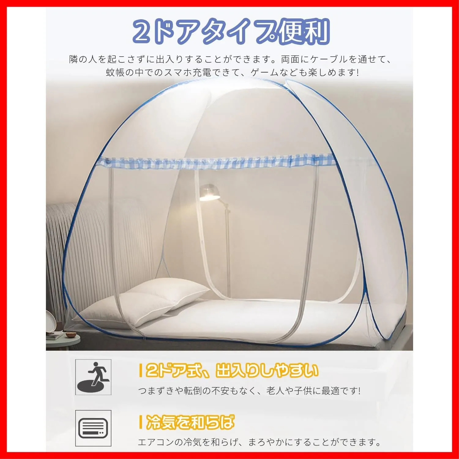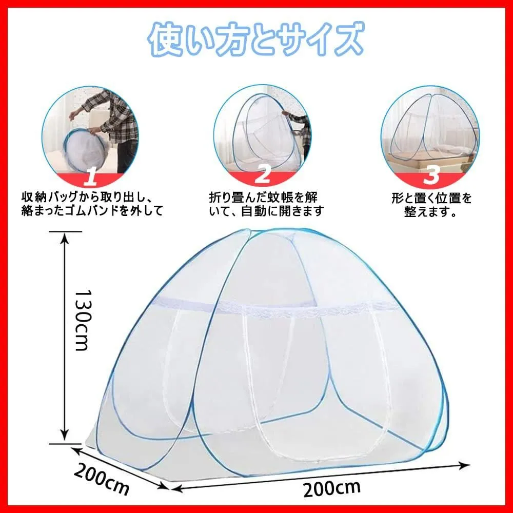 【ワンタッチ簡単設置】面倒な組み立て不要!開くだけで即使用可能なワンタッチ式蚊帳で、室内のベッド用はもちろん、モモンガ蚊帳、キャンプやアウトドアとしてもすぐに使えます。収納袋付き、コンパクトに折りたたみ可能で持ち運び便利です。