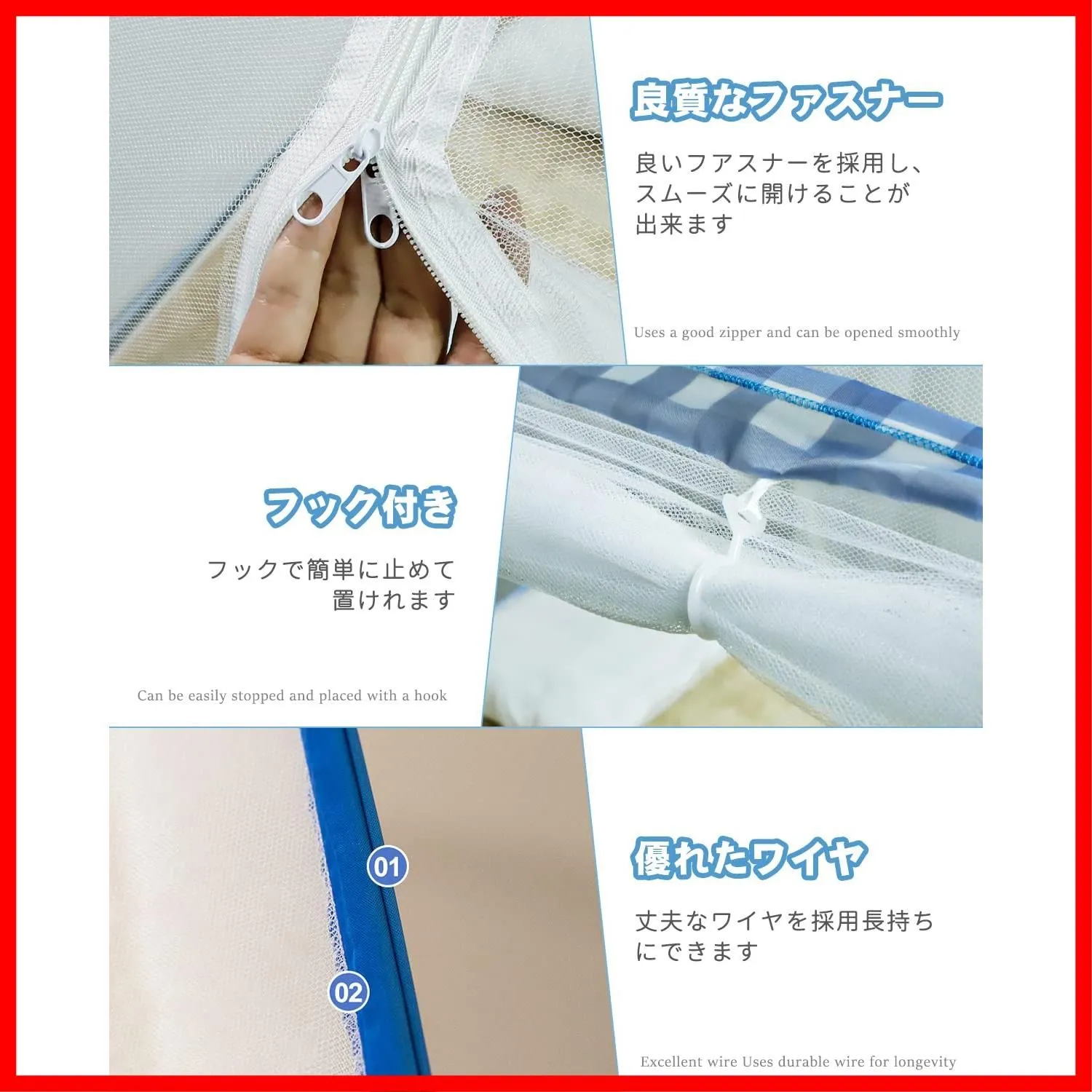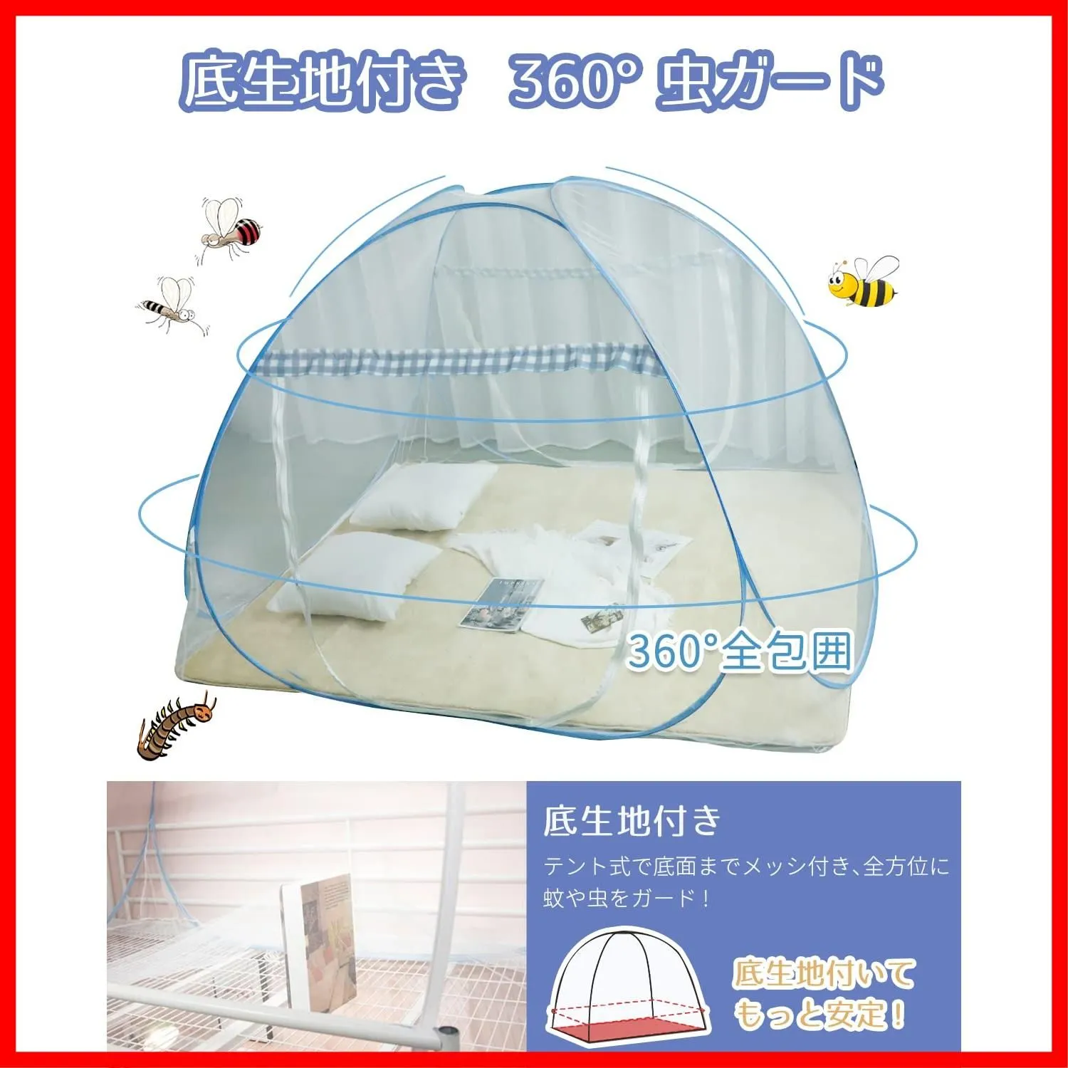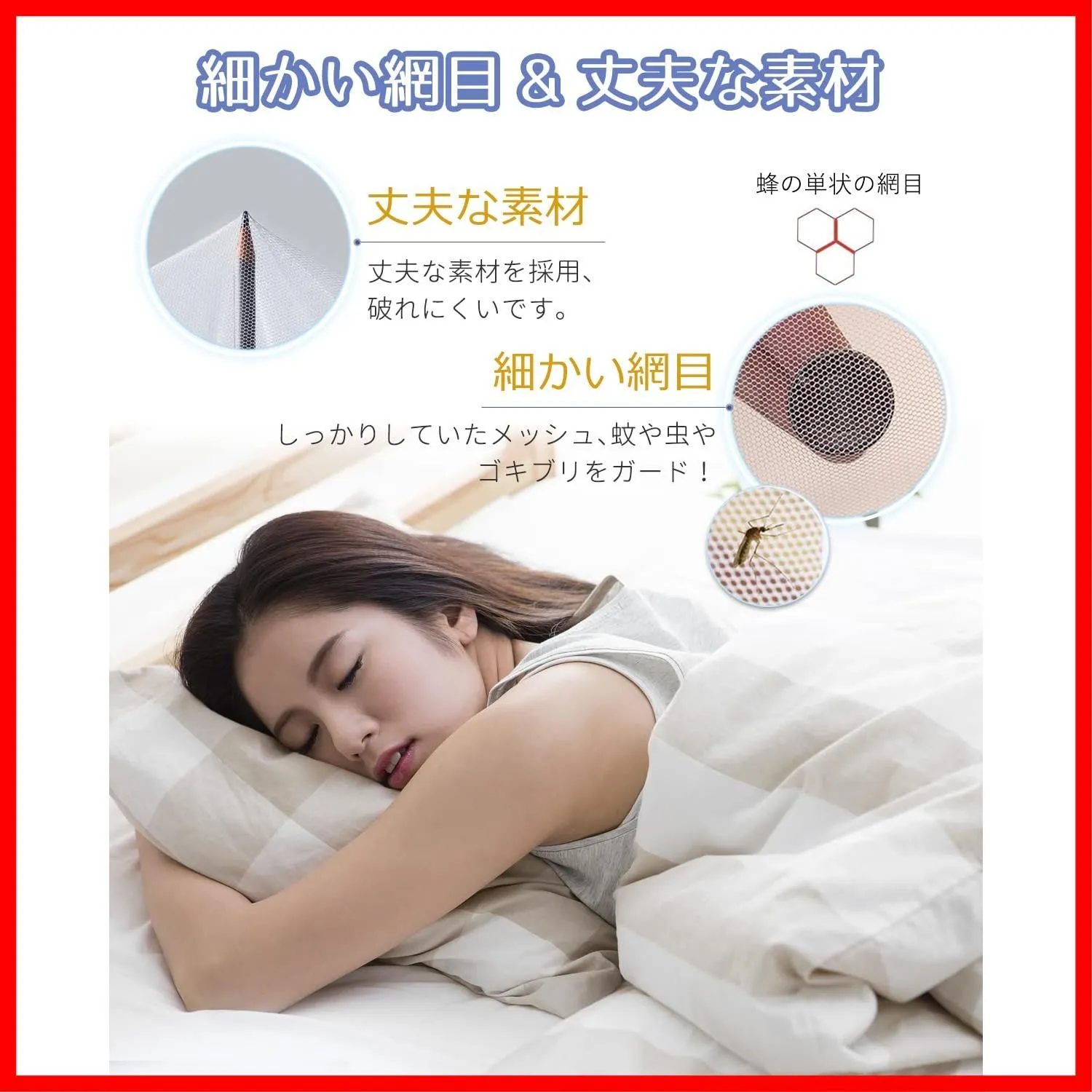 【高密度メッシュ生地で快適通気】通気性と防虫性を兼ね備えた高密度メッシュを採用、虫の侵入を防ぎつつ、空気をしっかり通すので蒸れにくく、寝苦しい夏でも安心して眠れます。底面にも細かいメッシュで、蚊やハエ、蜘蛛、ゴキブリなどの侵入を徹底ブロックできます。