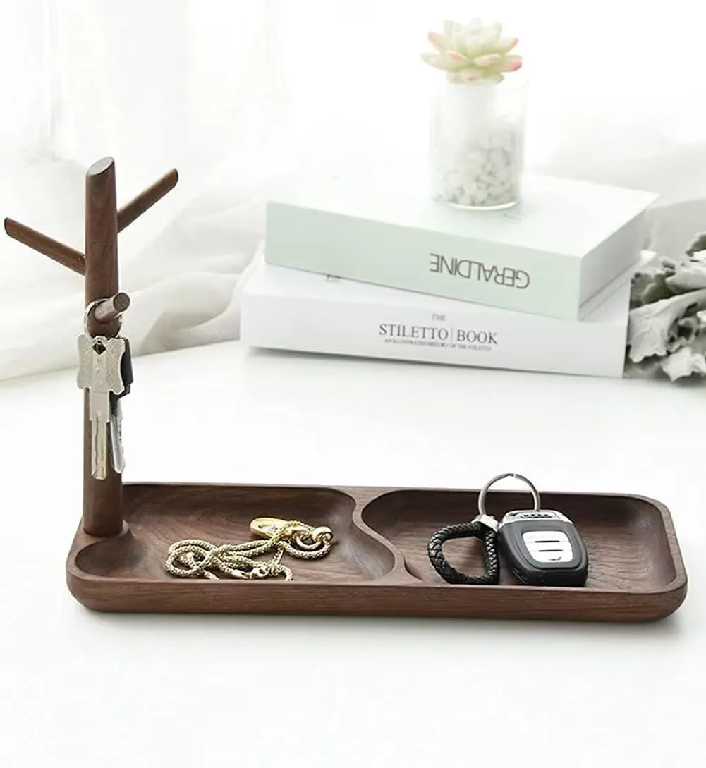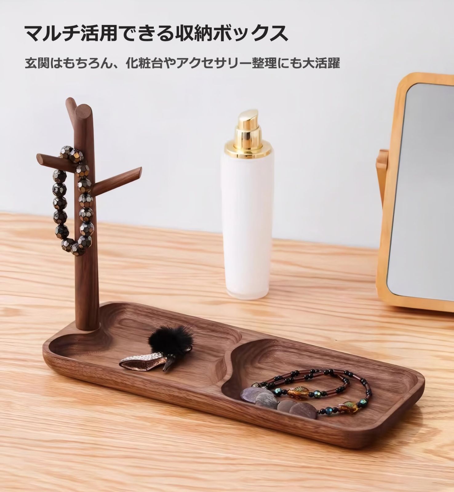 【人気商品】クルミ材 インテリア アクセサリー置き キーフック 卓上 小物入れ 長方形 鍵置き 卓上収納 鍵入れ 鍵ホルダー 玄関収納 木製 おしゃれ キースタンド Sakulaya