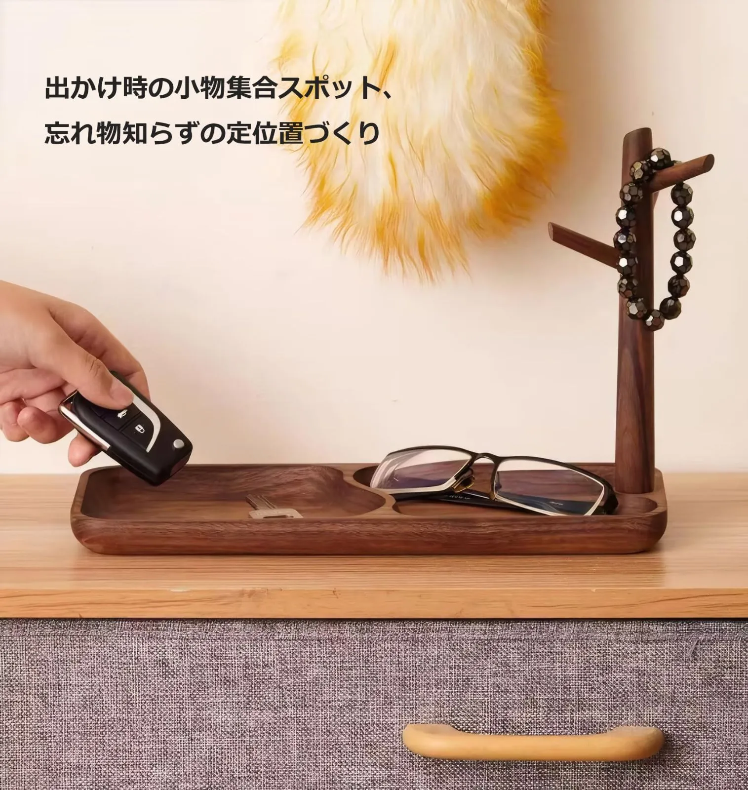 腕時計や車のキー、スマートフォンや小銭など、小物類をまとめて置ける収納スペース、常に持ち歩く小物は一箇所にまとめておくと便利。
