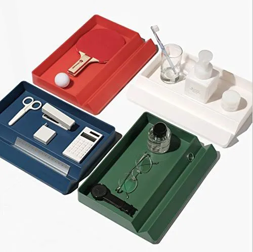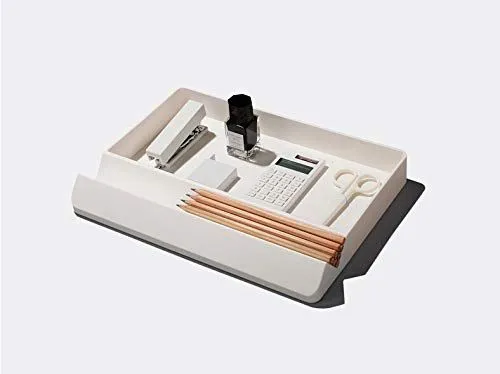 【在庫処分】収納 仕切りケース 小物入れ 卓上整理 文房具、リモコン、スマートフォン、鍵ホルダー 玄関、机 トレイ GRT オーガナイザー 多用 (ホワイト)