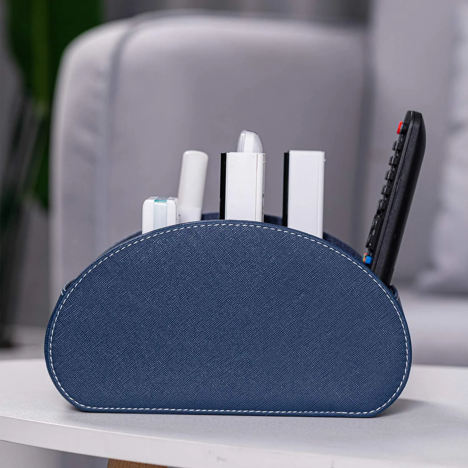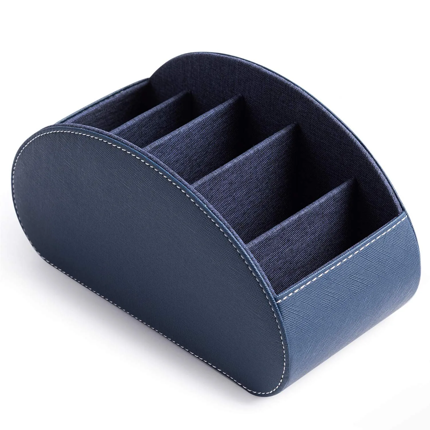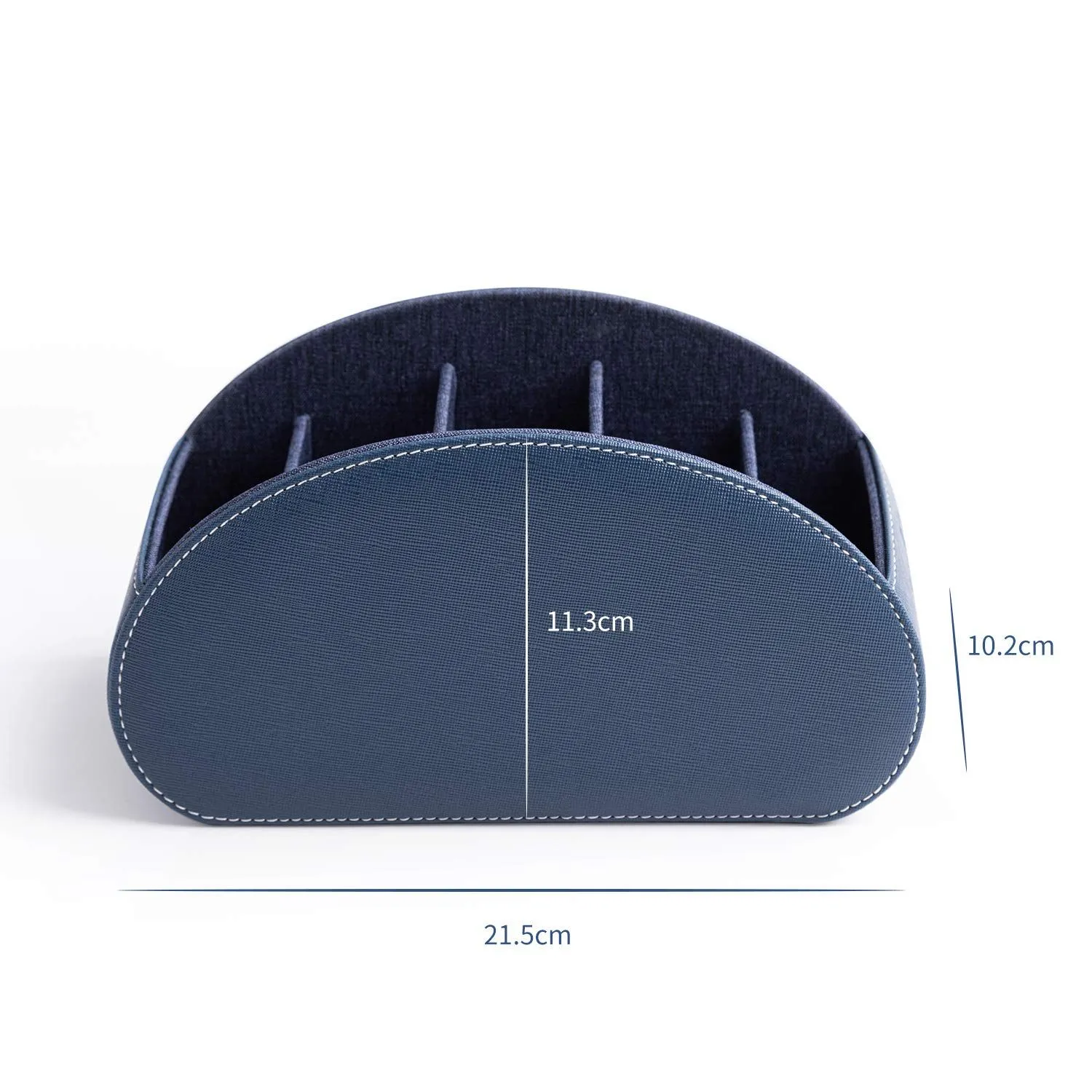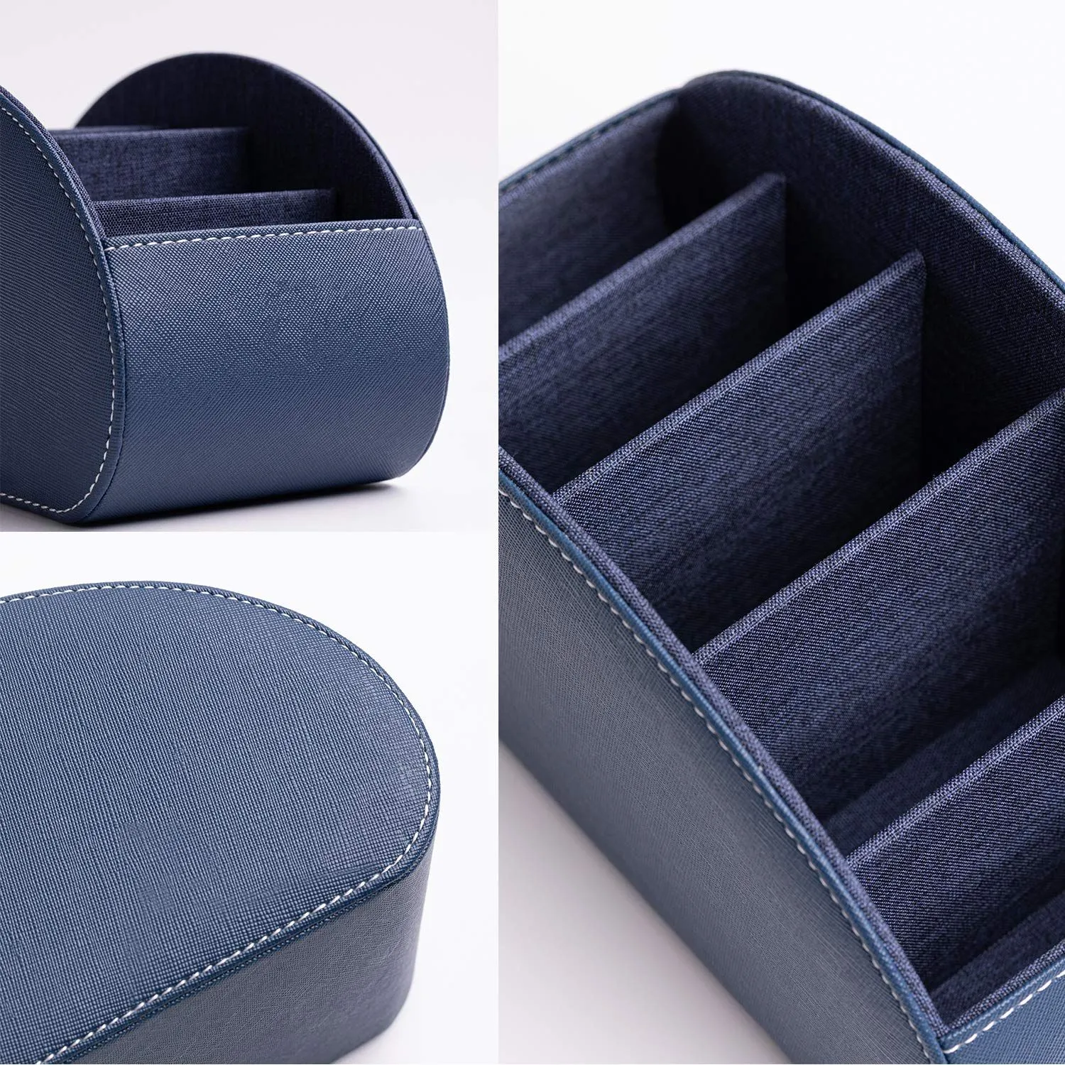 リモコンラック PUレザー 大きいサイズ リモコン収納 テーブル 5格仕切り リモコンスタンド おしゃれ 防水 多機能収納ボックス 大容量 文房具 卓上小物 (青 ベーシックモデル)