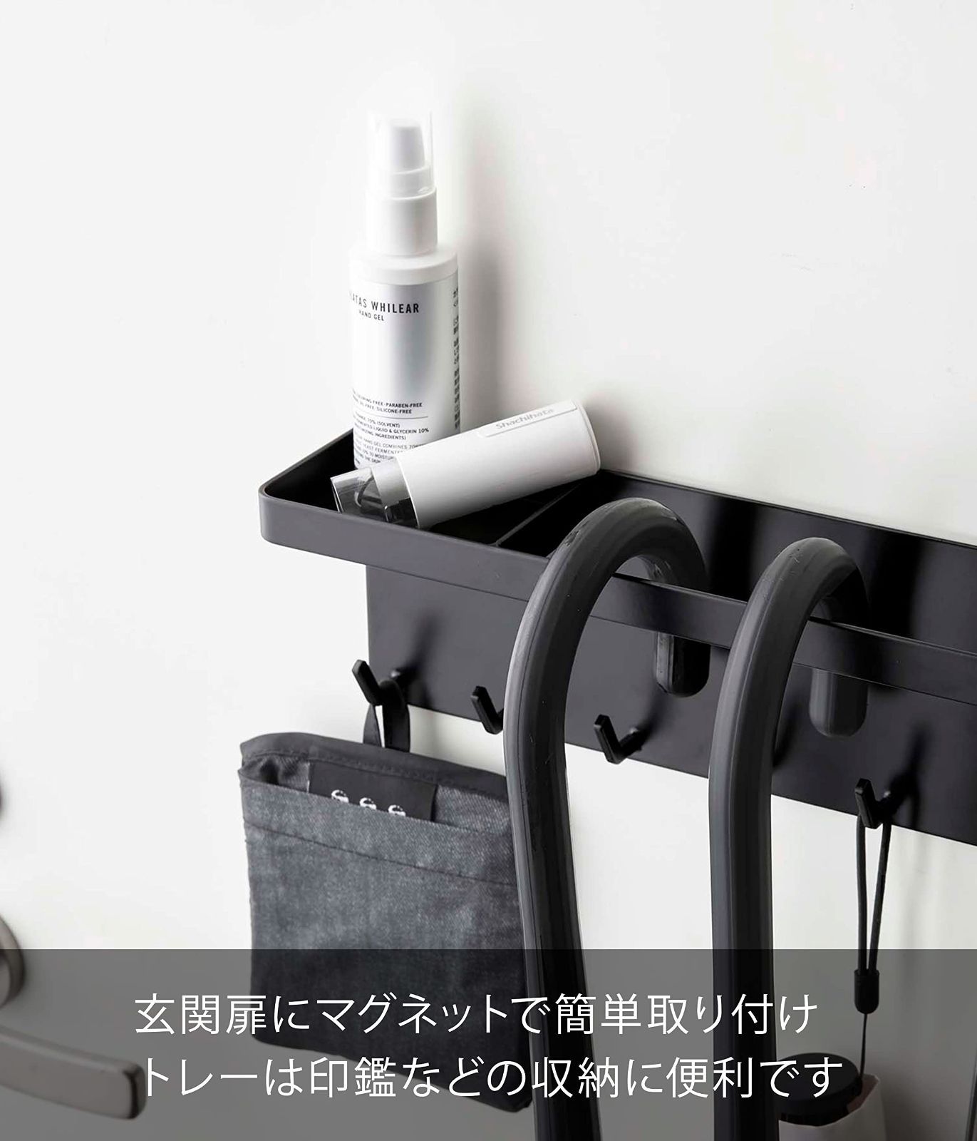 トレー付で印鑑や除菌グッズの収納に便利。