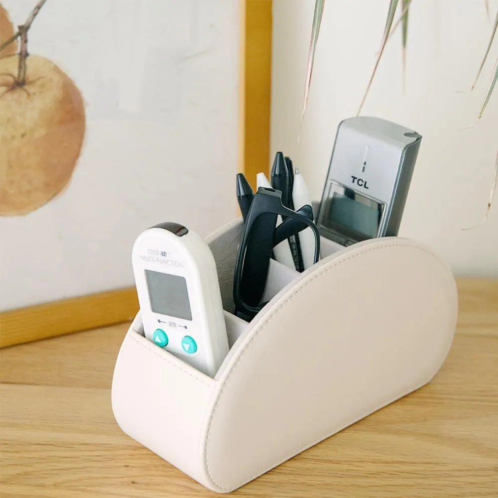 リモコンラック PUレザーリモコンホルダー 卓上リモコン収納ボックス 卓上小物収納ケース PUオシャレ収納ボックス(007ベージュ)