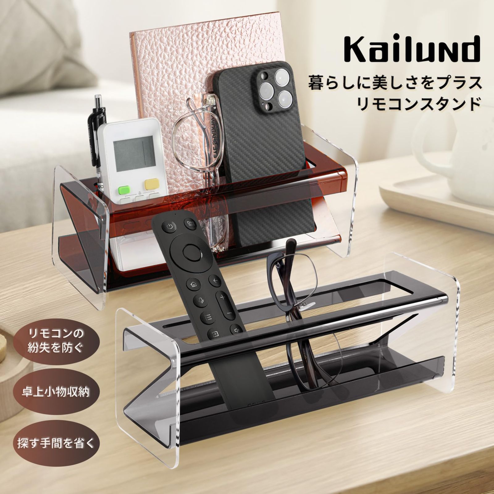 Kailund リモコンラック リモコンスタンド リモコン 収納 おしゃれ アクリル製 リモコン立て 自宅 オフィス 卓上整理 小物入れ お手入れ簡単 長さ24x幅10x高さ10cm ブラック