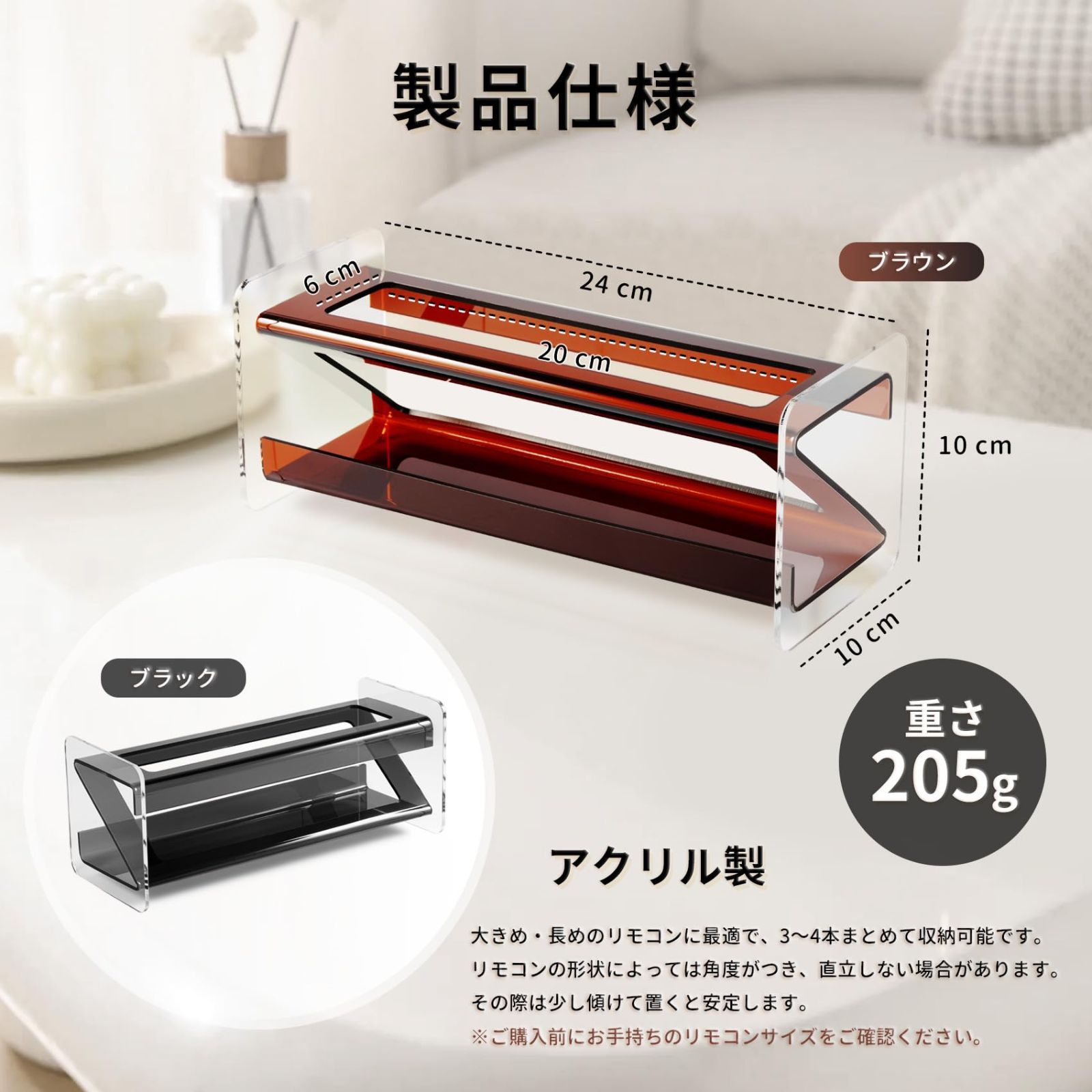 お手入れ簡単:耐久性に優れたアクリル素材を採用しており、汚れに強く、サッと水洗いが可能です。リモコン置きをいつでもキレイな状態を保てます