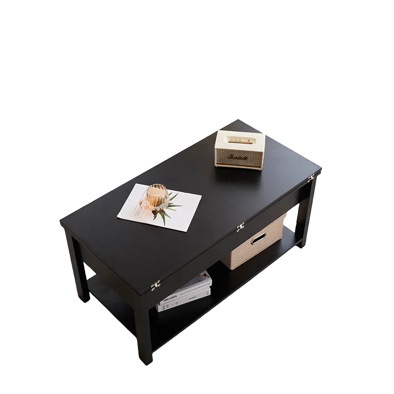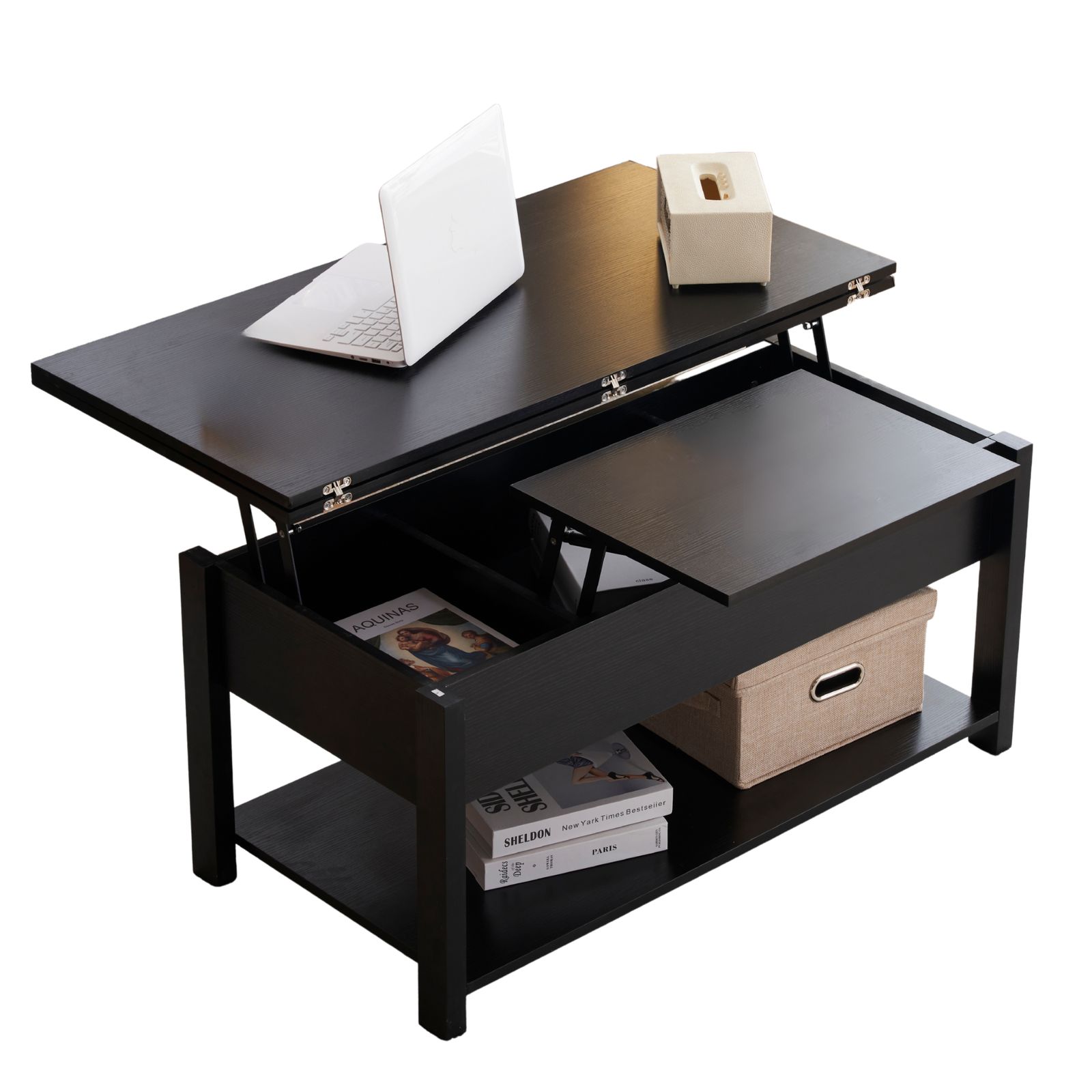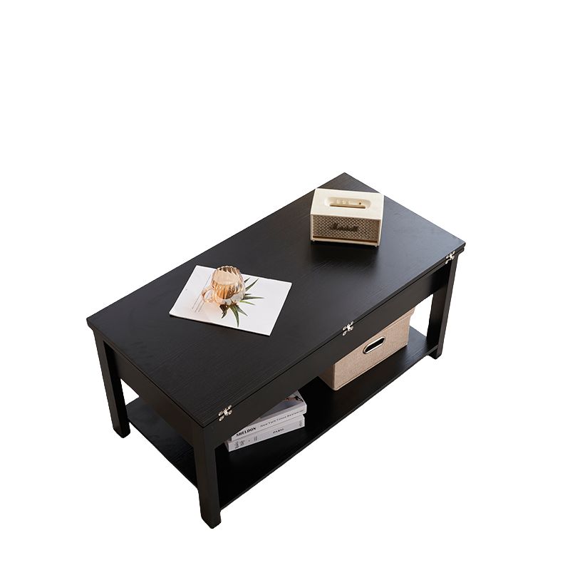 ローテーブル 折り畳み式天板 収納付き センターテーブル 天板昇降式 天板2倍展開可能 大容量収納 簡単開閉 昇降式 収納テーブル おしゃれ コンパクト 幅100㎝ 【ブラック】