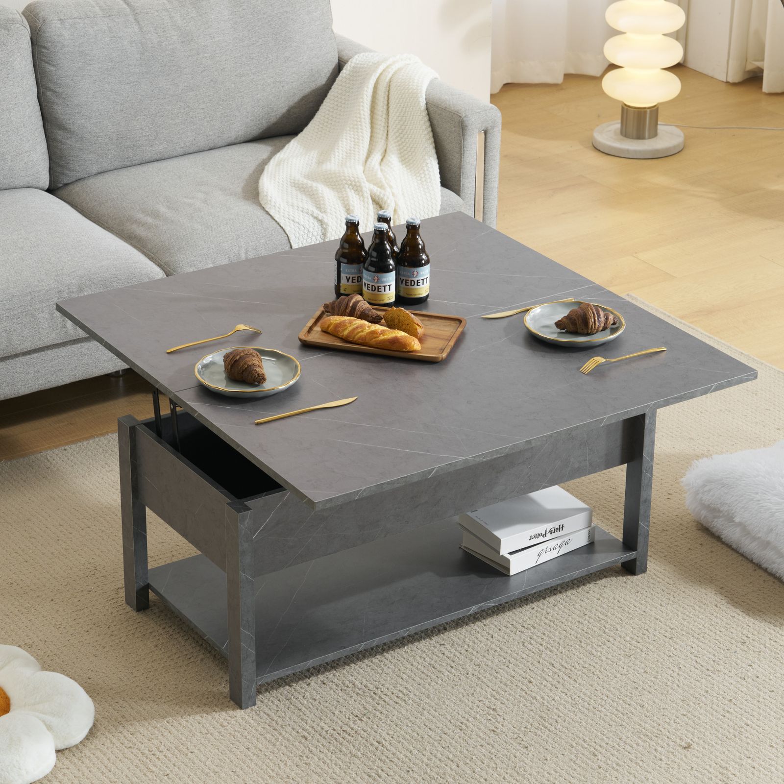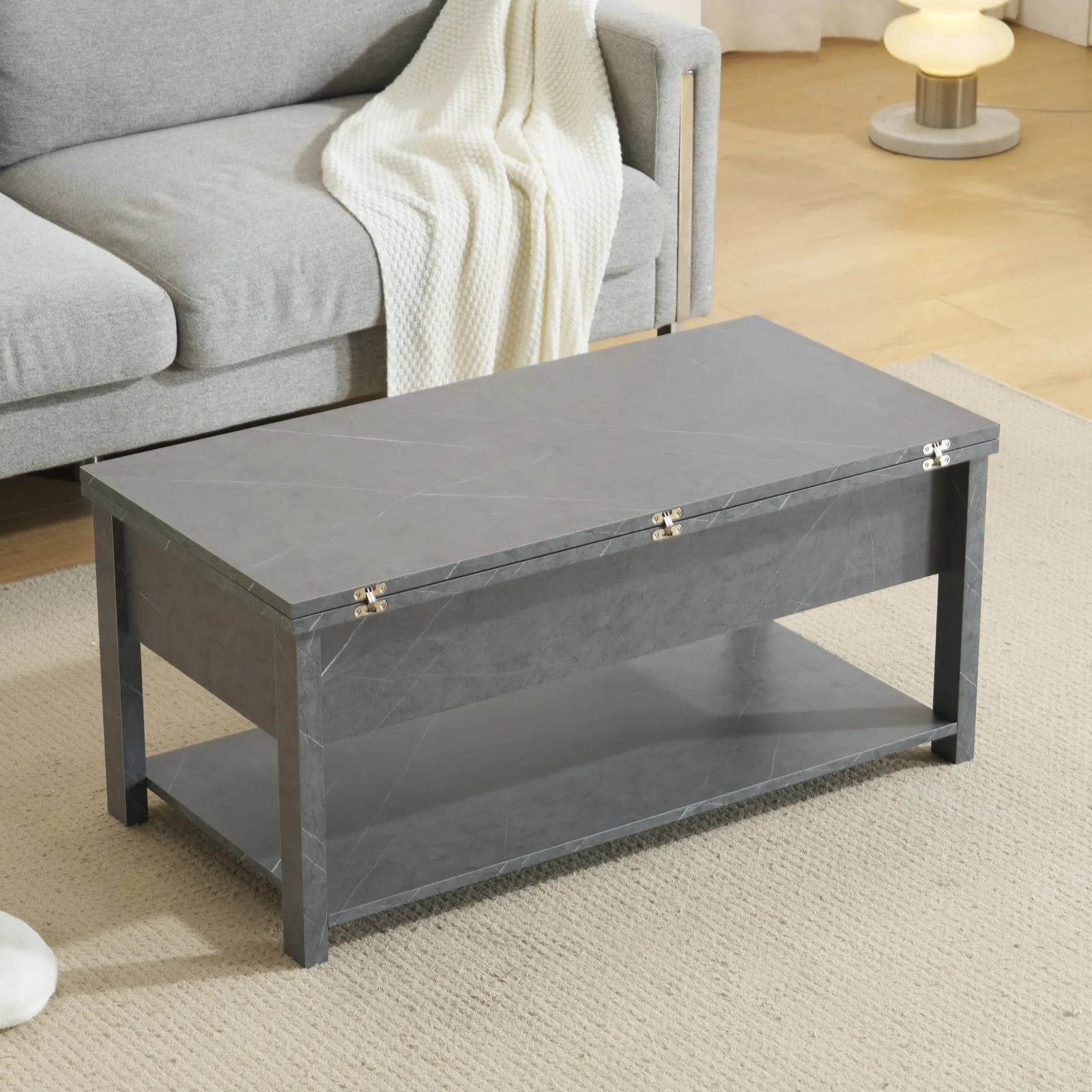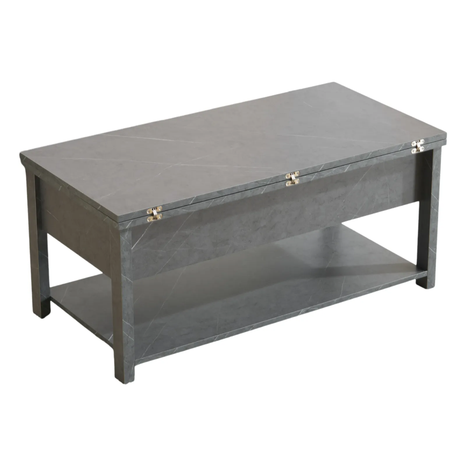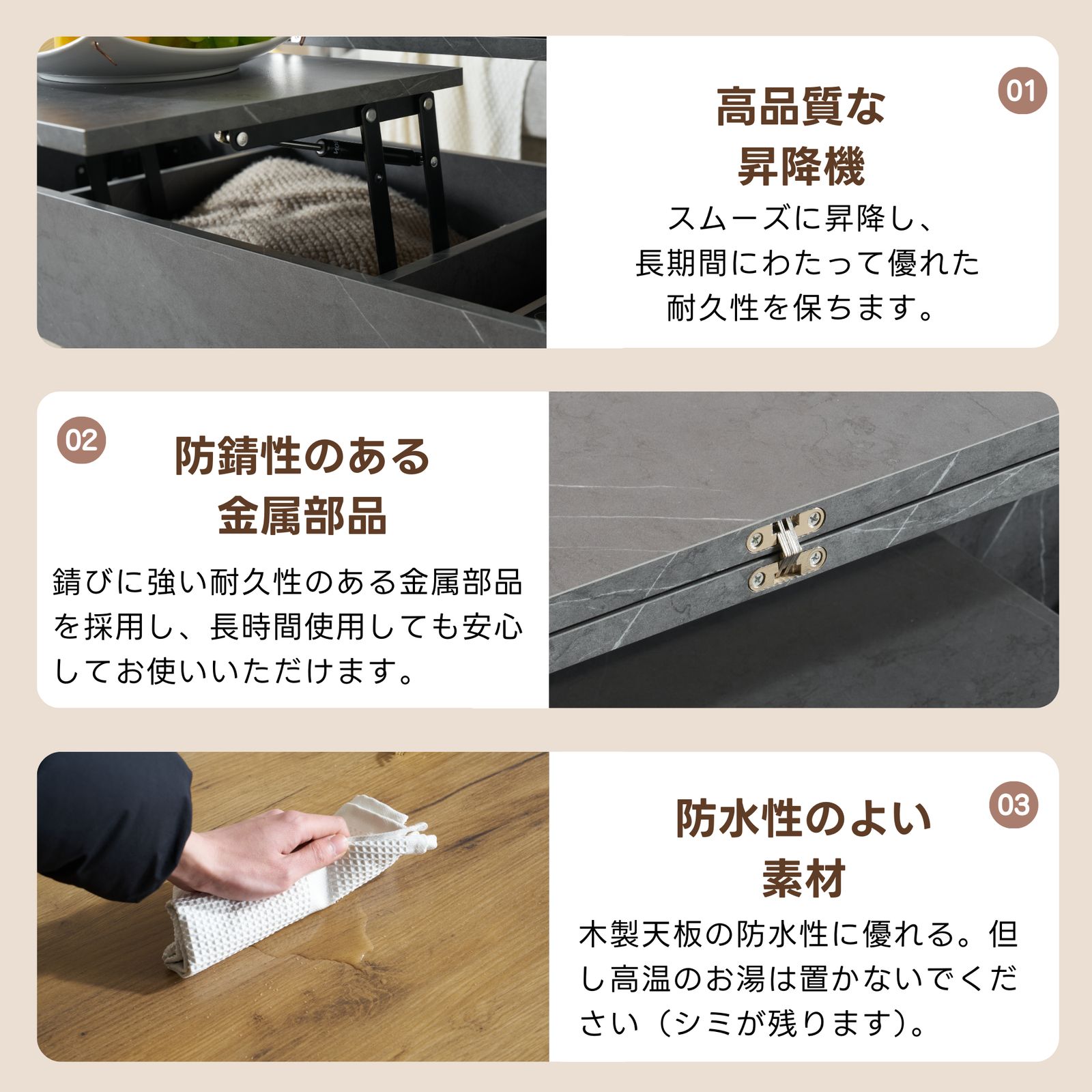 ローテーブル 折り畳み式天板 収納付き センターテーブル 天板昇降式 天板2倍展開可能 大容量収納 簡単開閉 昇降式 収納テーブル おしゃれ コンパクト 幅100㎝ 【グレー】