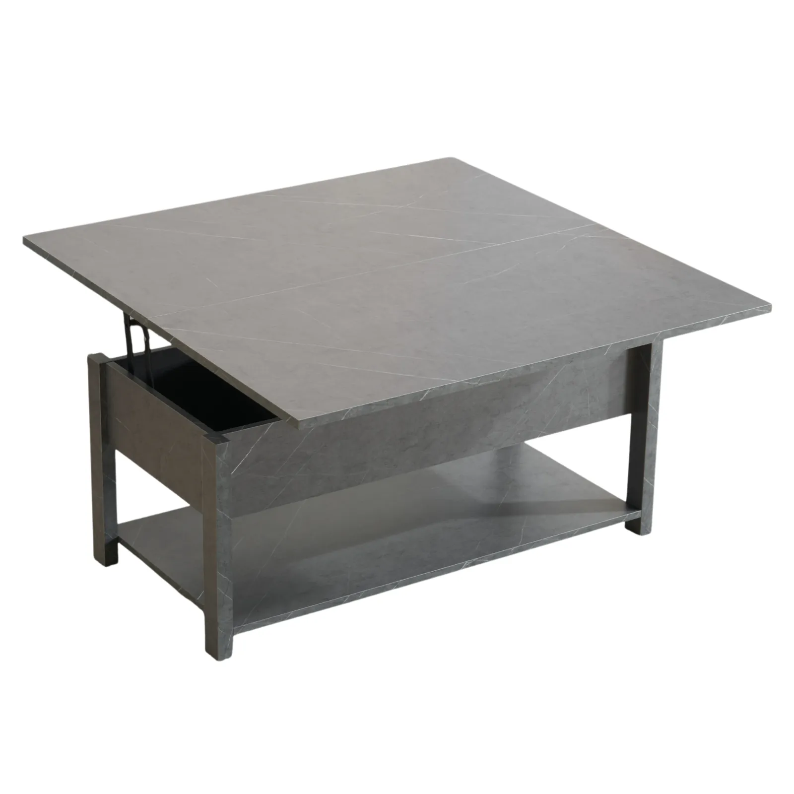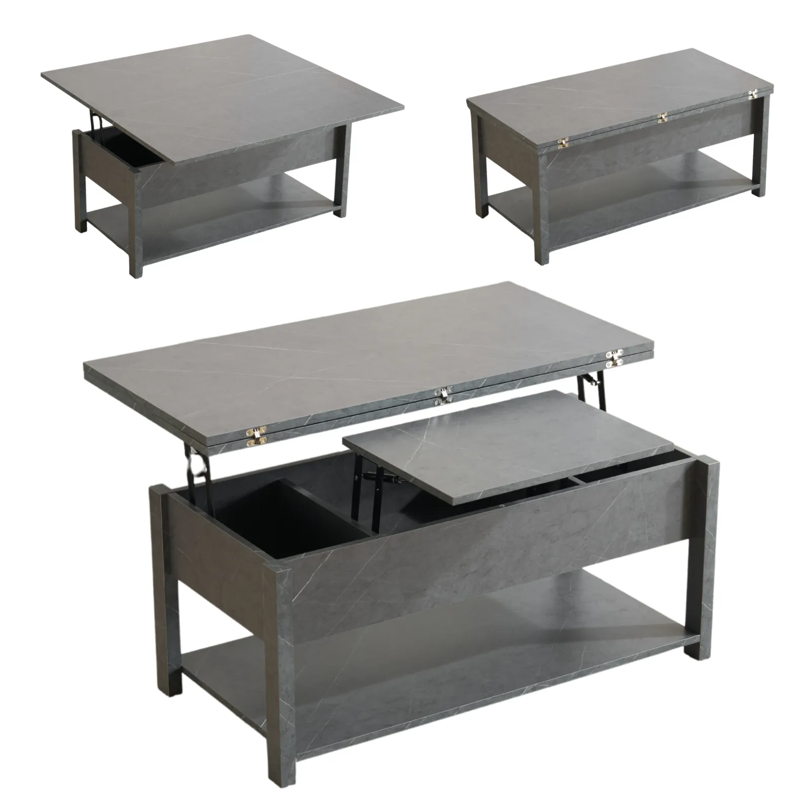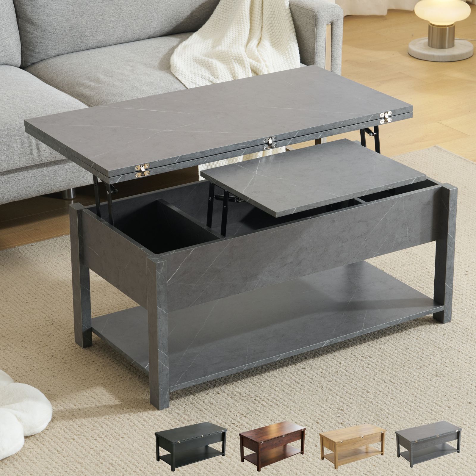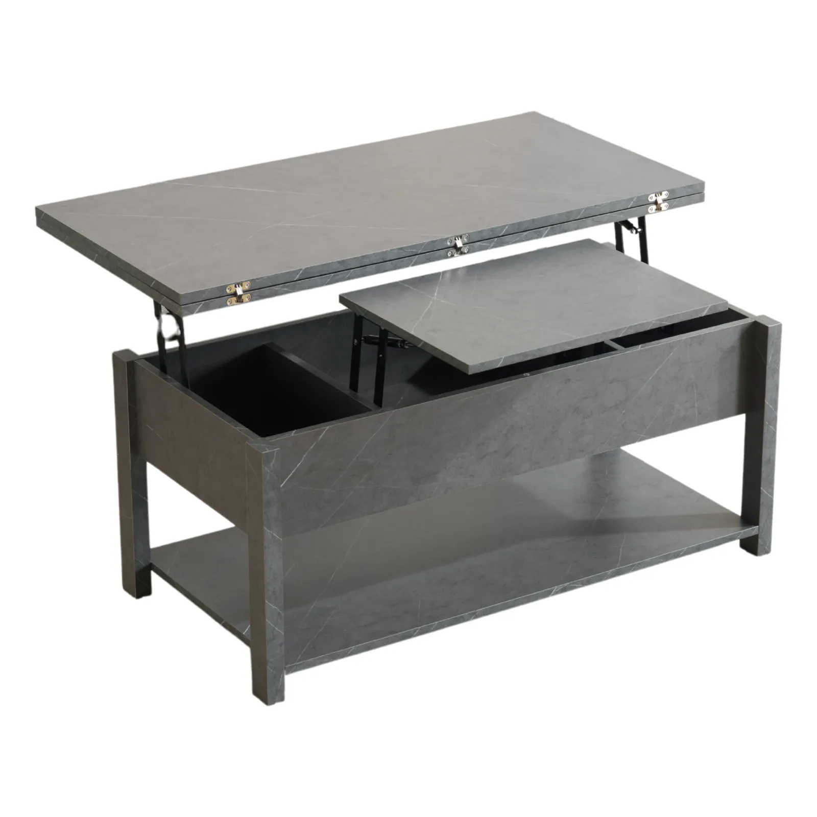ローテーブル 折り畳み式天板 収納付き センターテーブル 天板昇降式 天板2倍展開可能 大容量収納 簡単開閉 昇降式 収納テーブル おしゃれ コンパクト 幅100㎝ 【グレー】