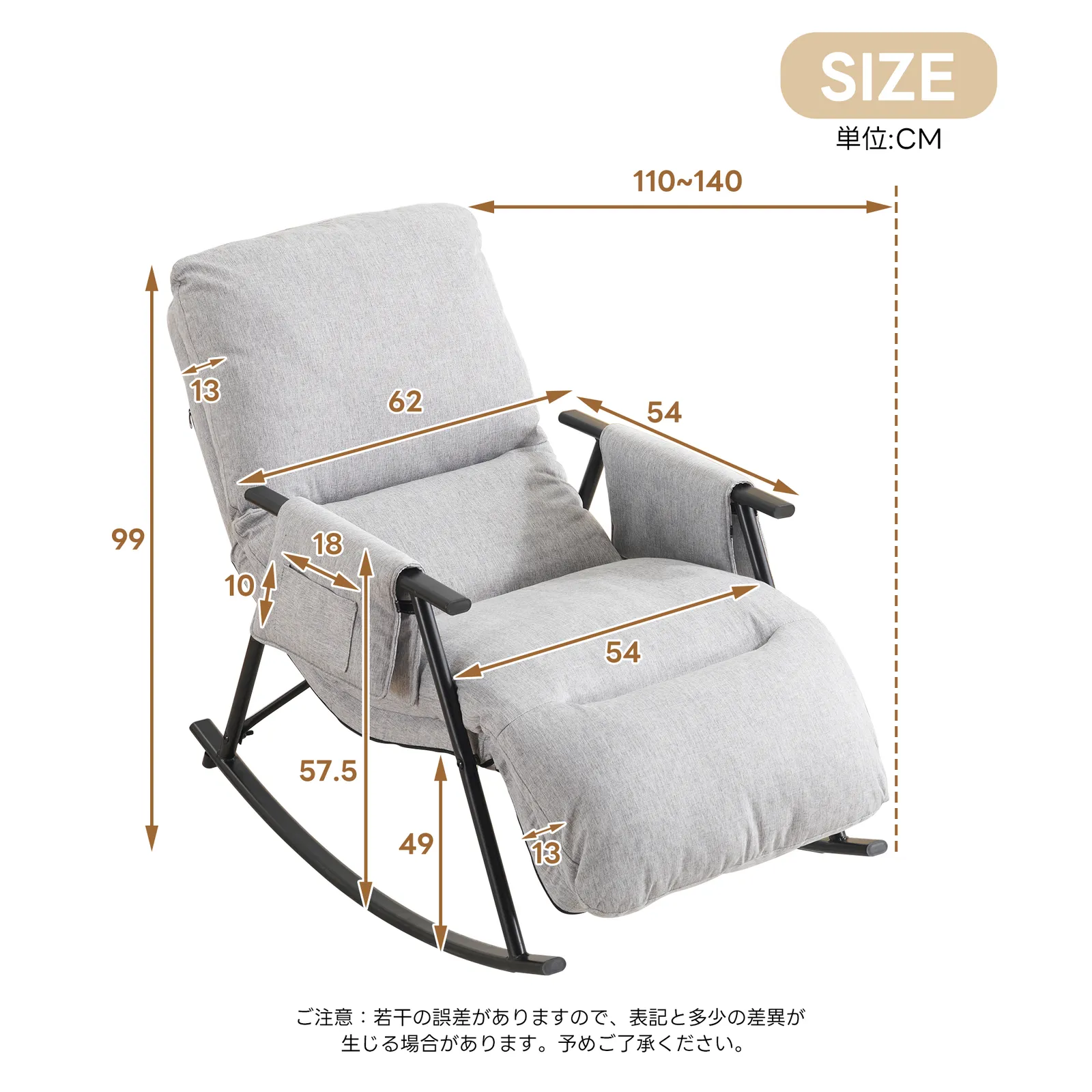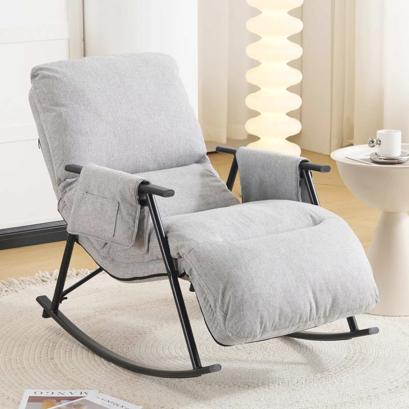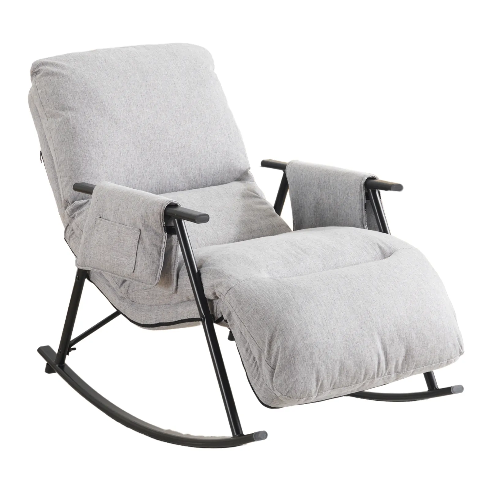 ロッキングチェア リラックスチェア 背もたれ多段階調節可能 足部分多段階調節可能 頑丈 耐久 座り心地よい 揺れる椅子 床を傷つけない 組み立て簡単 屋内用 リビングルーム用 ベランダ用 リラックス 一人暮らし ふわふわ ライトグレー