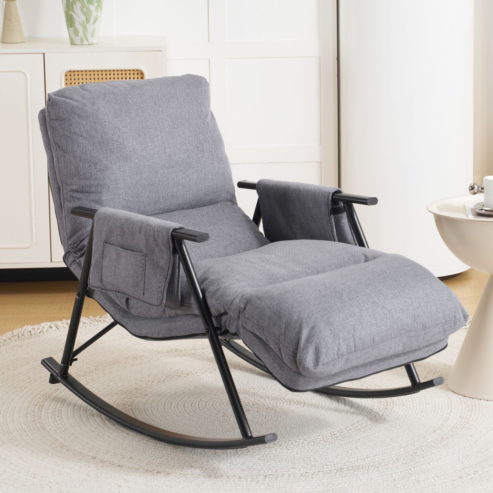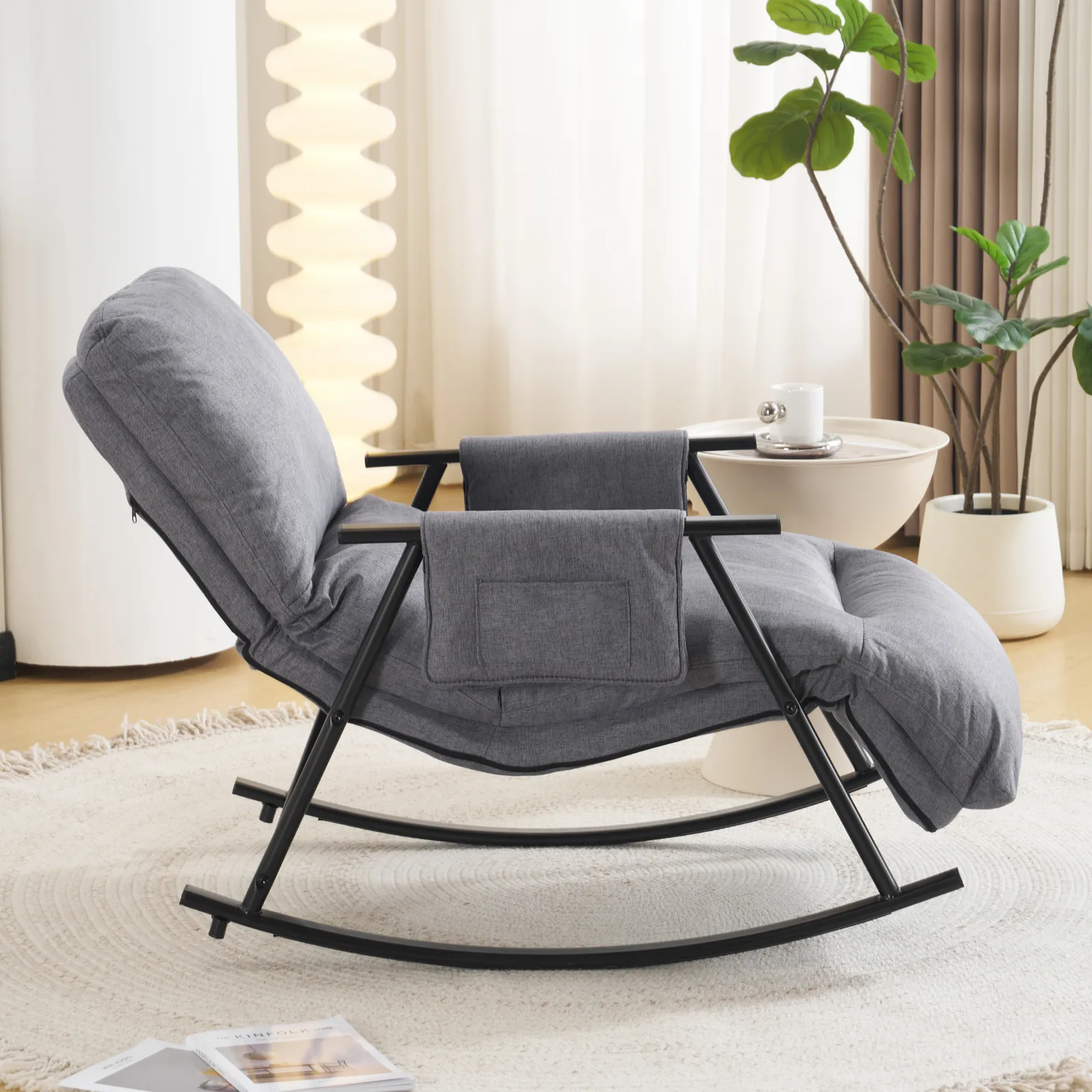 ロッキングチェア リラックスチェア 背もたれ多段階調節可能 足部分多段階調節可能 頑丈 耐久 座り心地よい 揺れる椅子 読書椅子 床を傷つけない 組み立て簡単 屋内用 リビングルーム用 ベランダ用 リラックス 一人暮らし ふわふわ 通気性 【DARK GRE