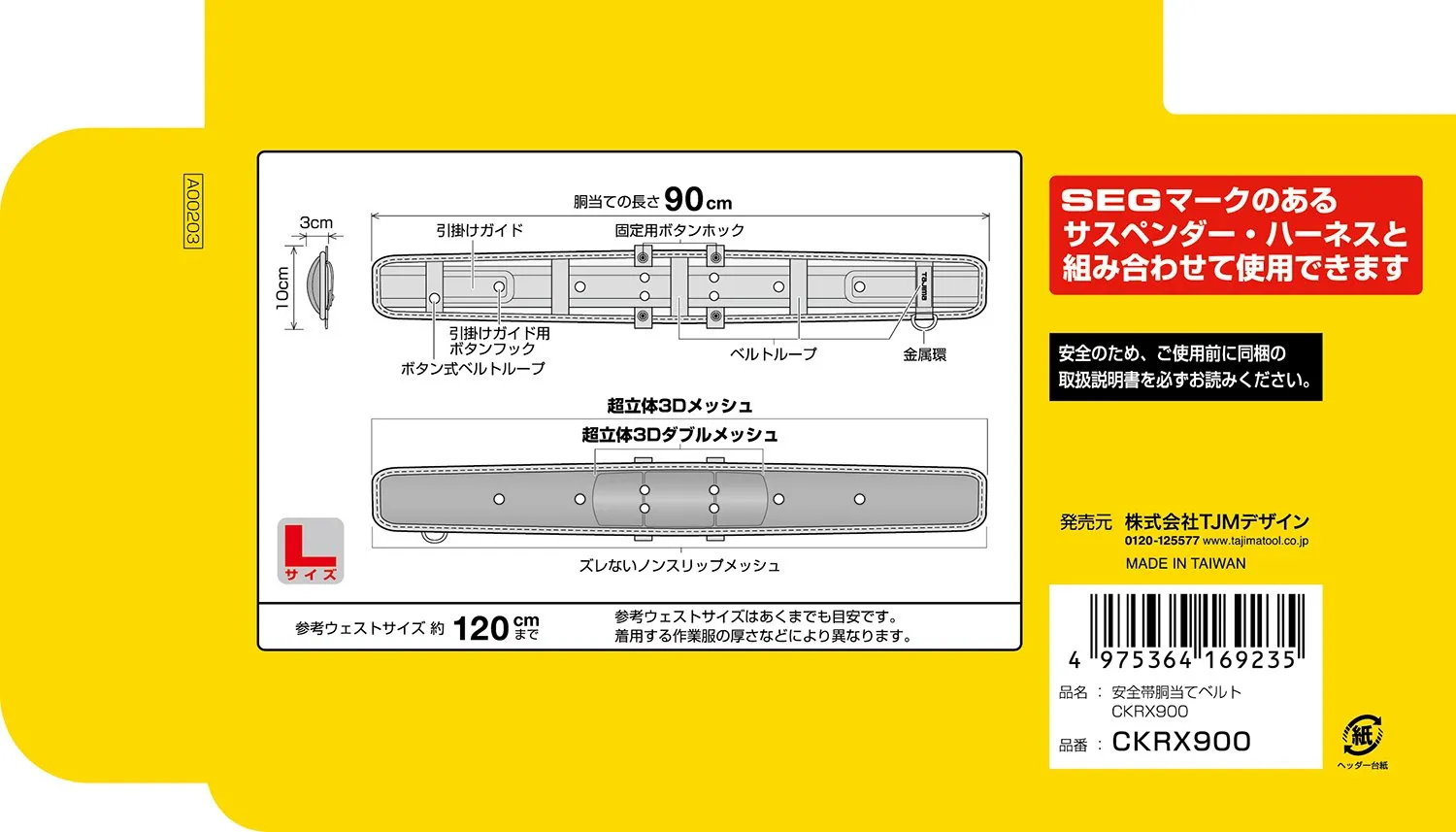 新品 タジマ 安全帯 胴当てベルトCKRX900 長さ900mm 通気性のよい超立体3Dダブルメッシュでムレ防止 ノンスリップメッシュ構造 タジマフルハーネス・サスペンダーと簡単に取付け/取外し可能