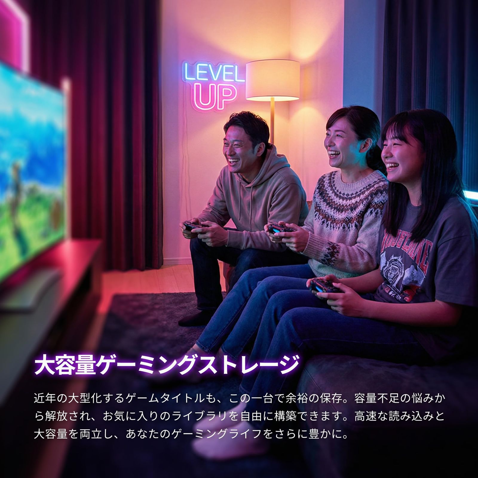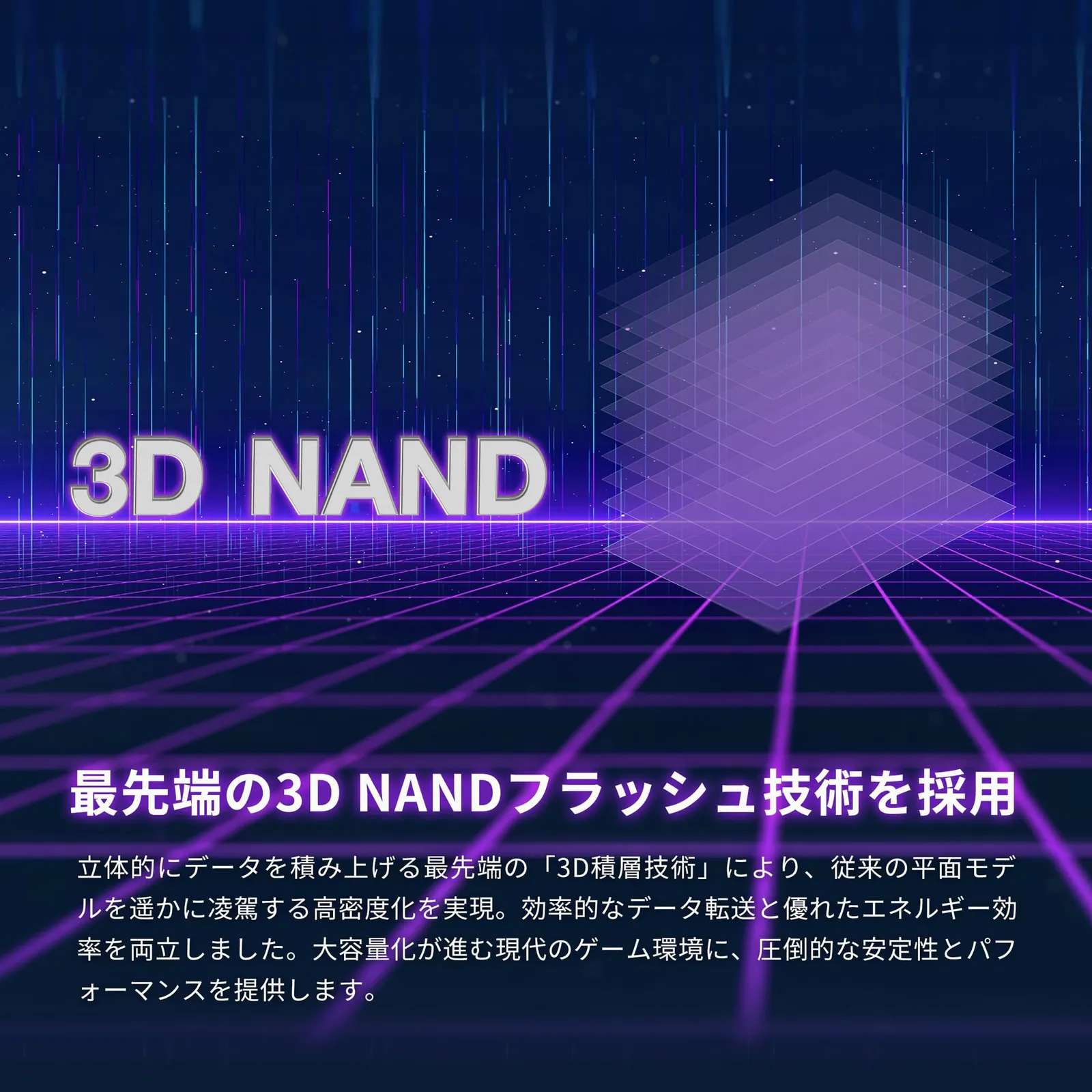 【データ安全性を守るECC機能】 組み込みの自動エラー訂正(ECC)機能により、データ転送の信頼性を確保。大切なゲームデータやファイルを破損から守ります。
