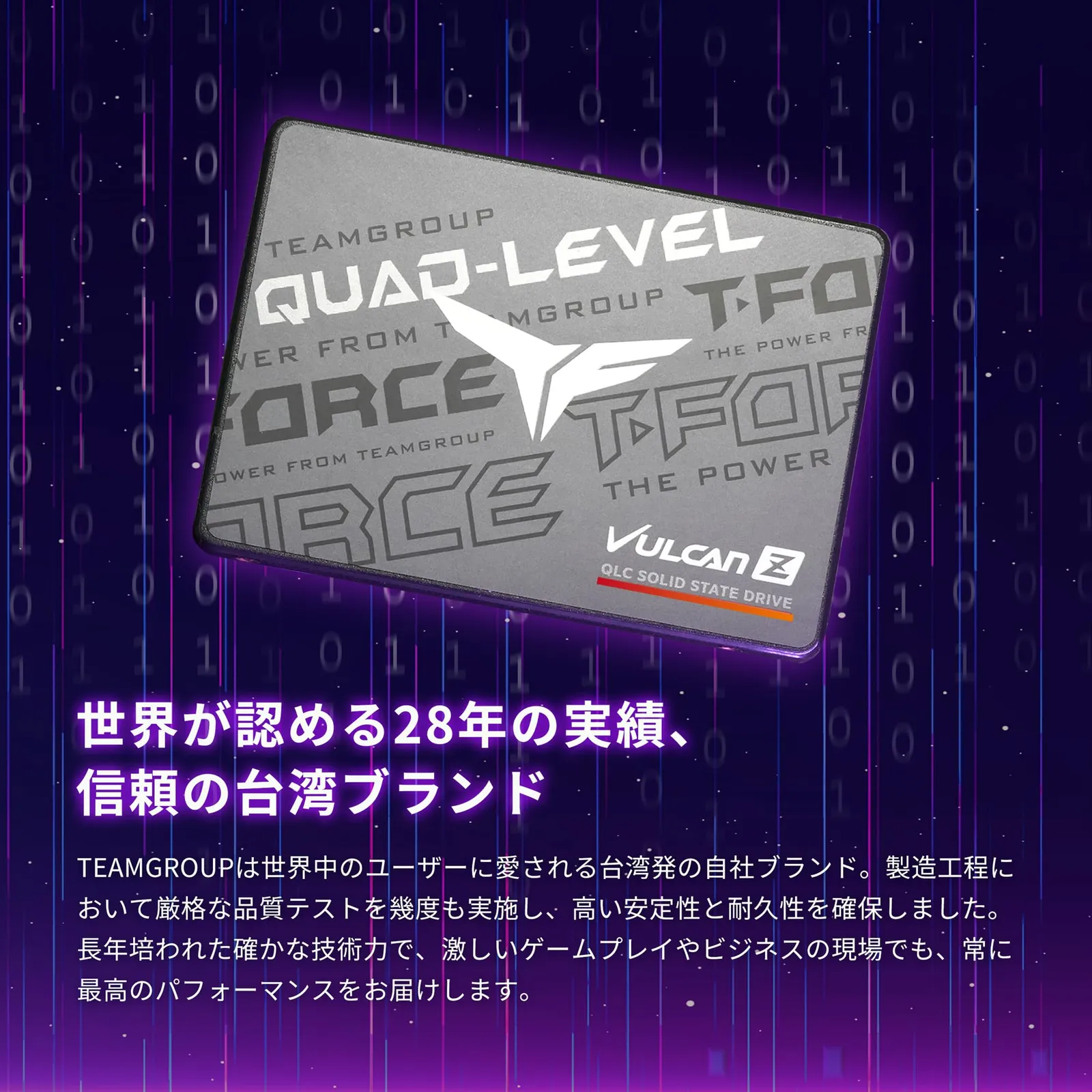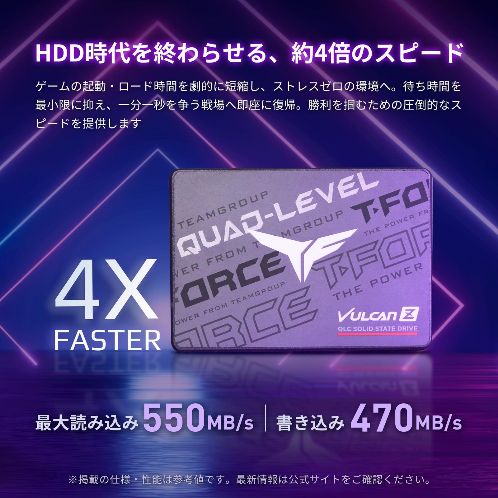 新品 TEAMGROUP T-FORCE SSD 1TB SATA 内蔵 QLC VULCAN Zシリーズ 6Gb/s 読み込み最大550MB/s 書き込み最大470MB/s 2.5インチ 7mm厚 日本国内3年正規 T253TY001T0C101