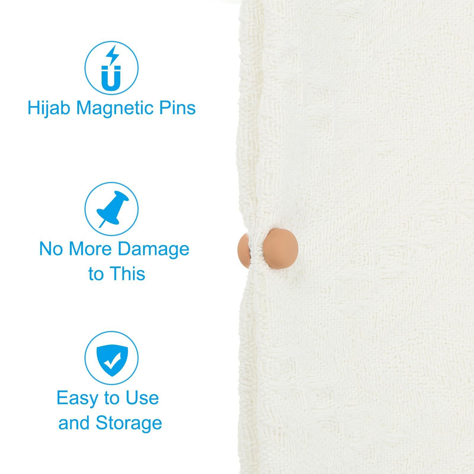 ヒジャブ安全ピンの代替品で、床に落ちたり首を傷つけたりする尖ったピンはもうありません。他の尖ったピンのようにスカーフにダメージを与えることもありません。製品には収納バッグが付属しているため、簡単な収納やギフト用に別途購入する必要はありません。