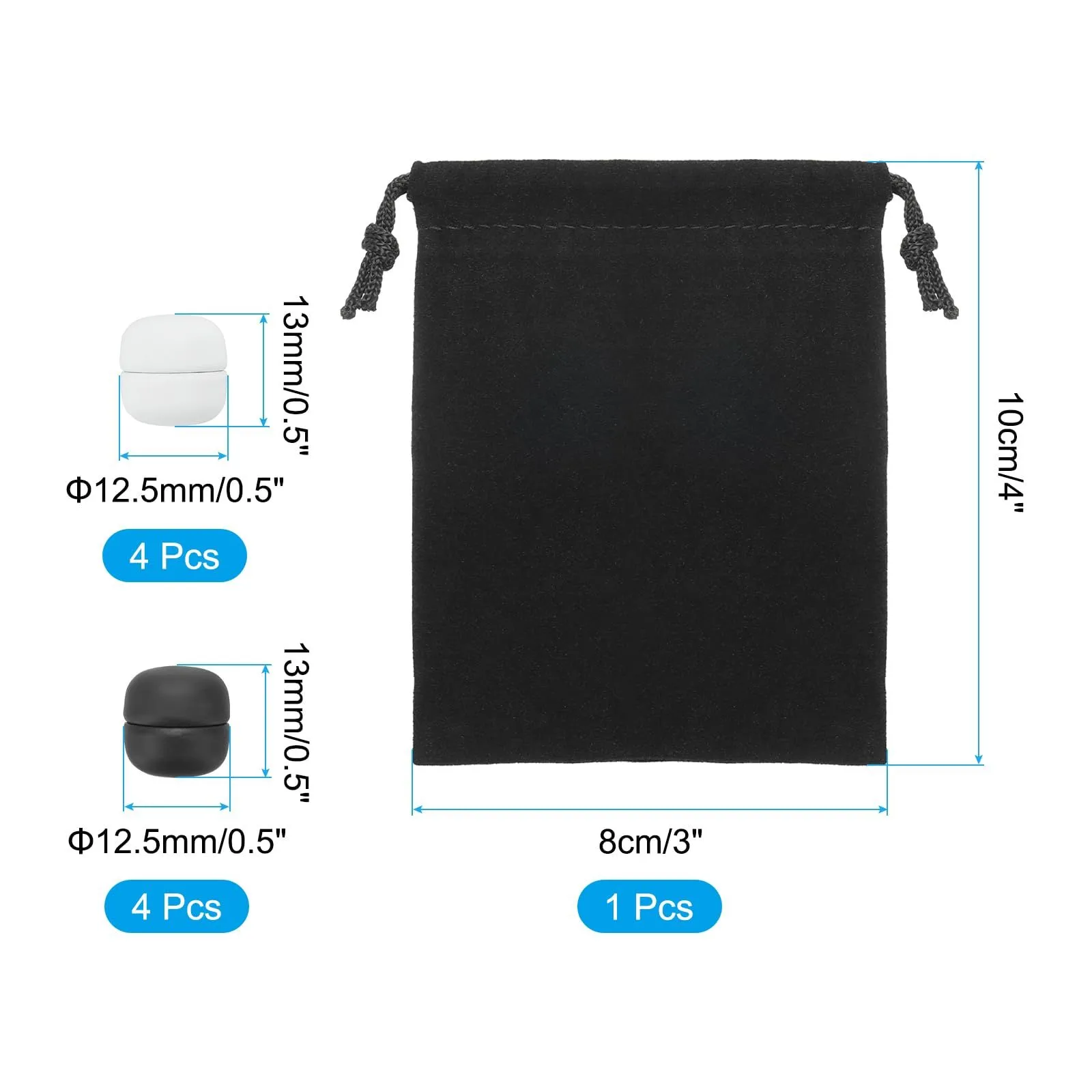 カラー:黒、ホワイト;素材:マグネットバックル、フランネル;バッグサイズ:8x10cm / 3x4inch(縦×横);マグネットバックルサイズ:13x12.5mm / 0.5x0.5inch(縦×横);パッキングリスト:ヒジャブマグネットピン8個、収納バッグ1個