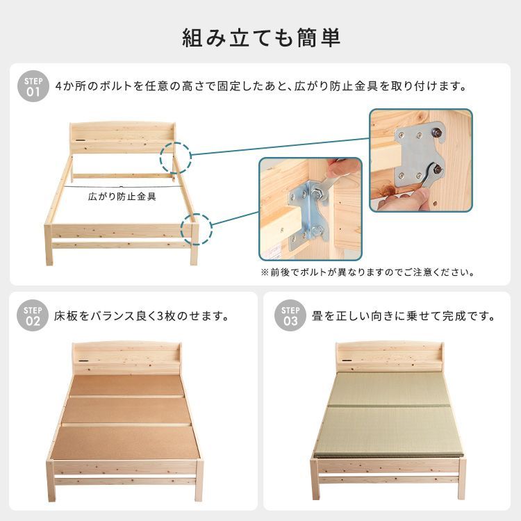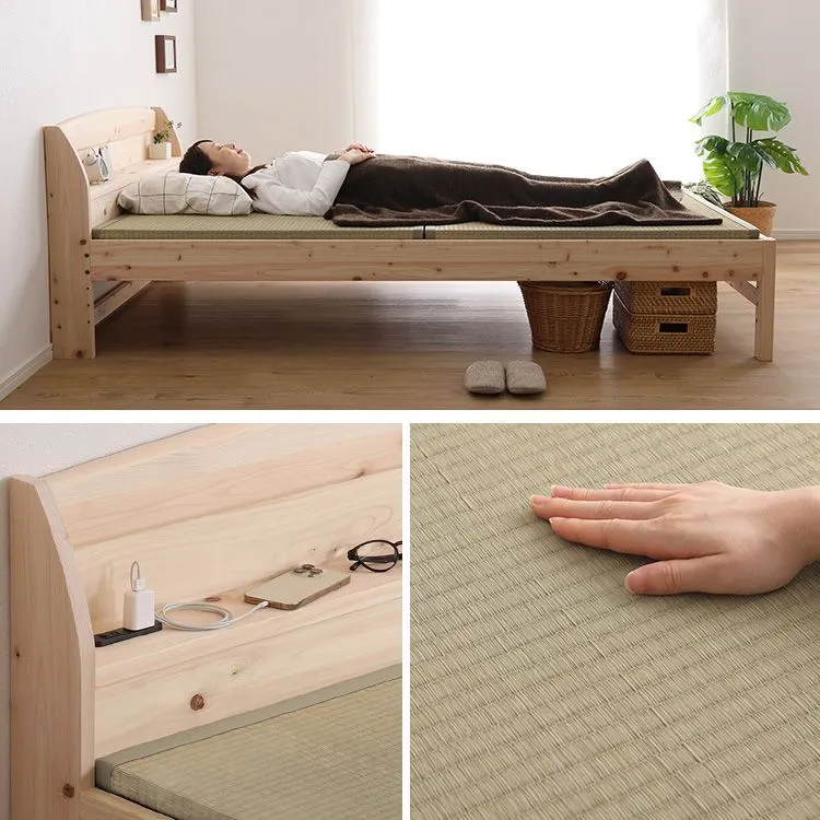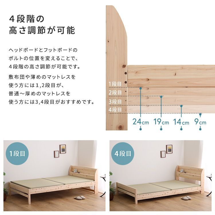 棚コンセント付き国産ひのきベッド 本畳タイプ【HINOKA-ヒノカ-】(セミダブル) SH-30-JPTT-SD-NA ナチュラル