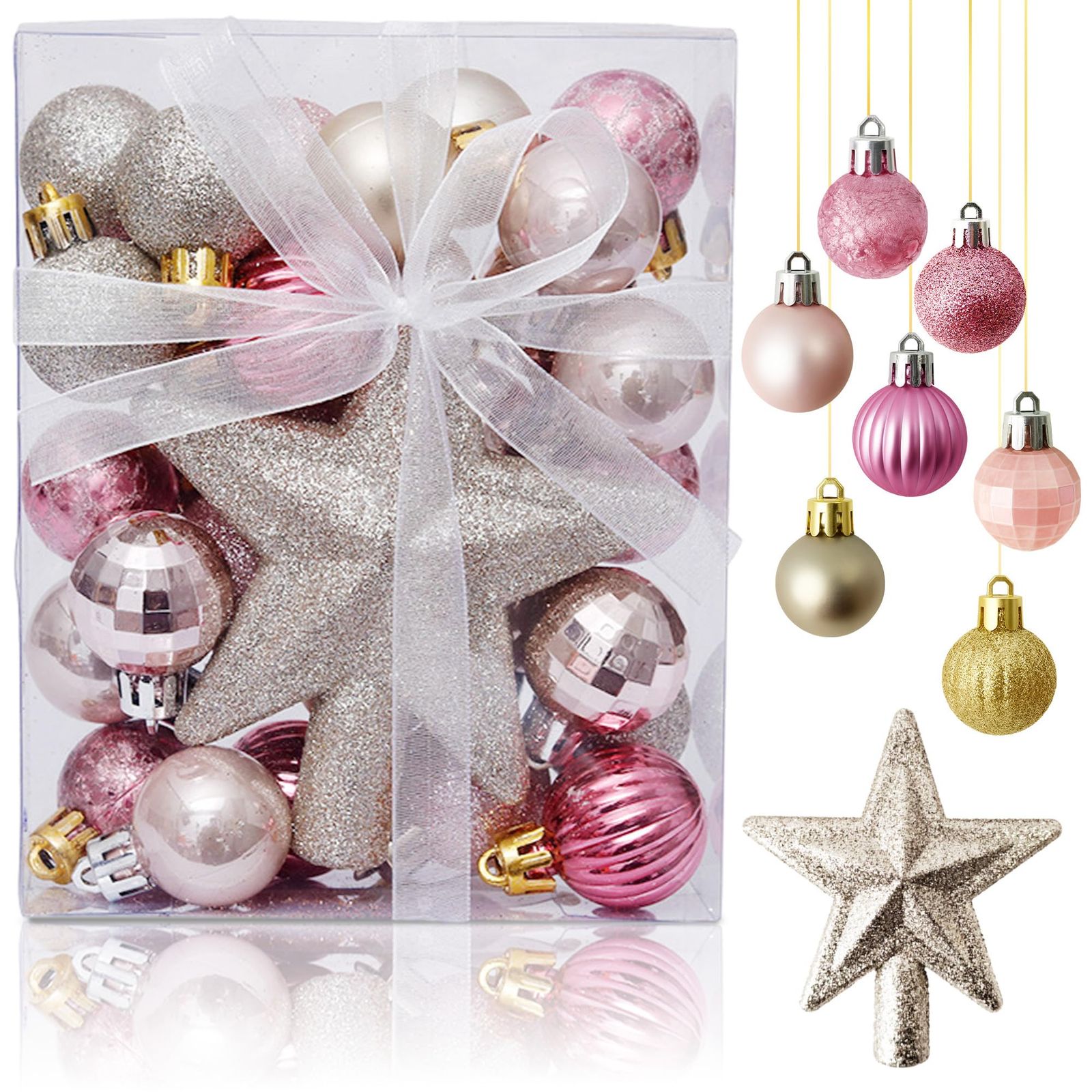 クリスマスツリー オーナメント 30個入り クリスマスボール 星 スター 北欧 飾り付け キラキラ おしゃれ かわいい デコレーション クリスマス ツリー 飾り 装飾 christmas Xmas 部屋 店舗 家庭 可愛い パーティー ピンク