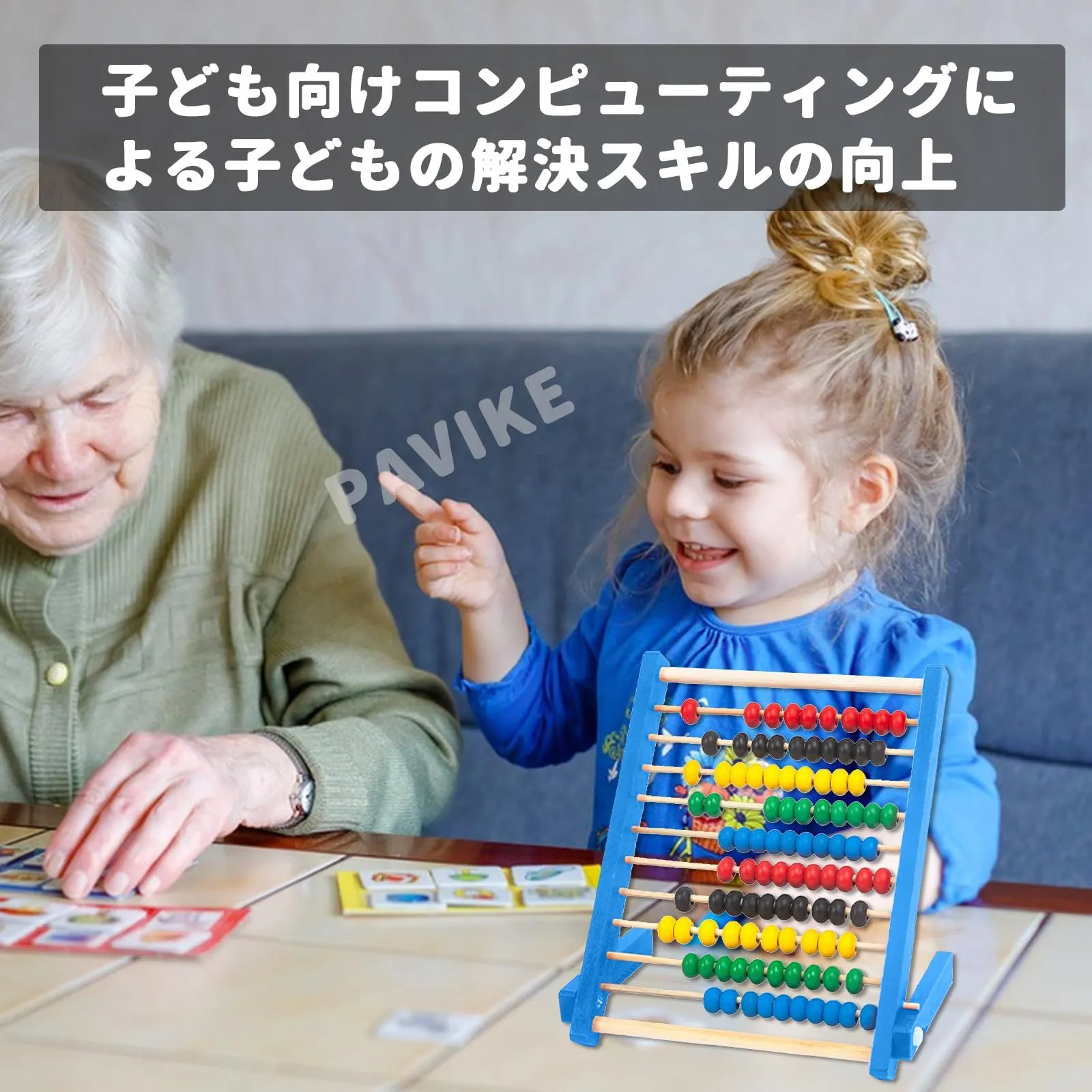 PAVIKE そろばん 子供 算盤 数学 算数 知育玩具 小学校 幼稚園 足し算 引き算 掛け算 割り算 教材 教具 就学前学習おもちゃ 100玉そろばん 子供 そろばん