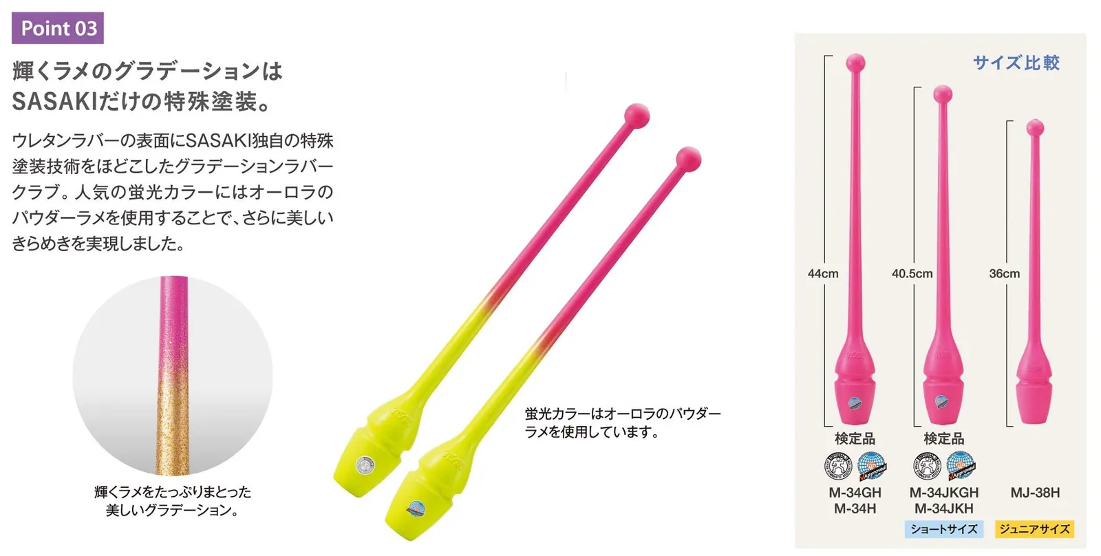 新品 SASAKI(ササキ) 体操 手具 ネオンカラー ラバークラブ M34HF