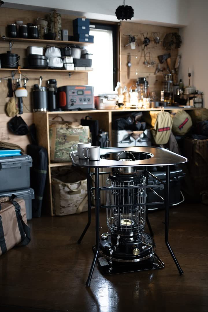 天板中央が空いており、ストーブでお湯などを沸かす事ができます。