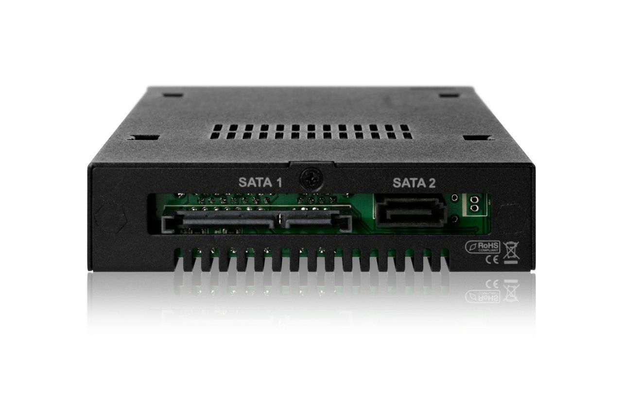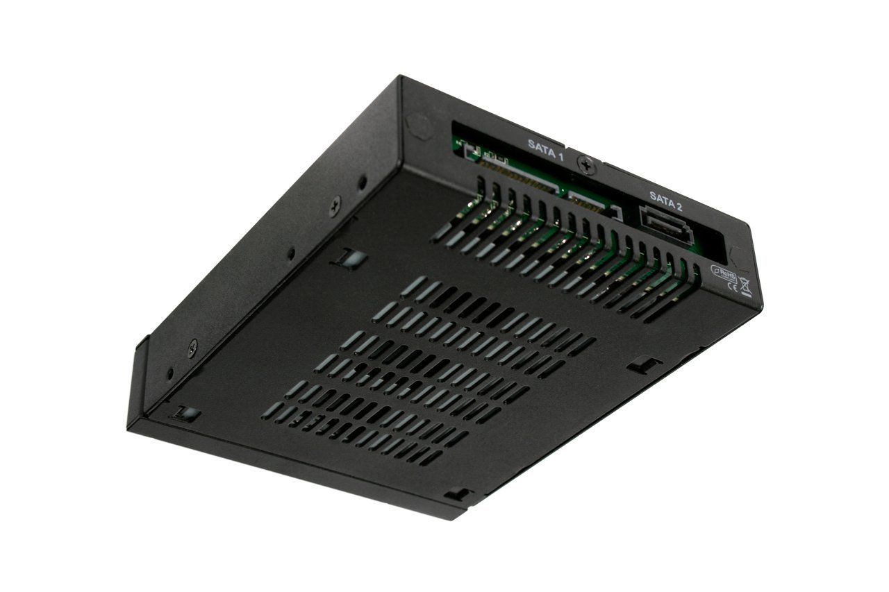 3.5インチベイ1台分に7mm~9.5mmの厚さの2.5インチSATA HDD/SSDを2台搭載可能