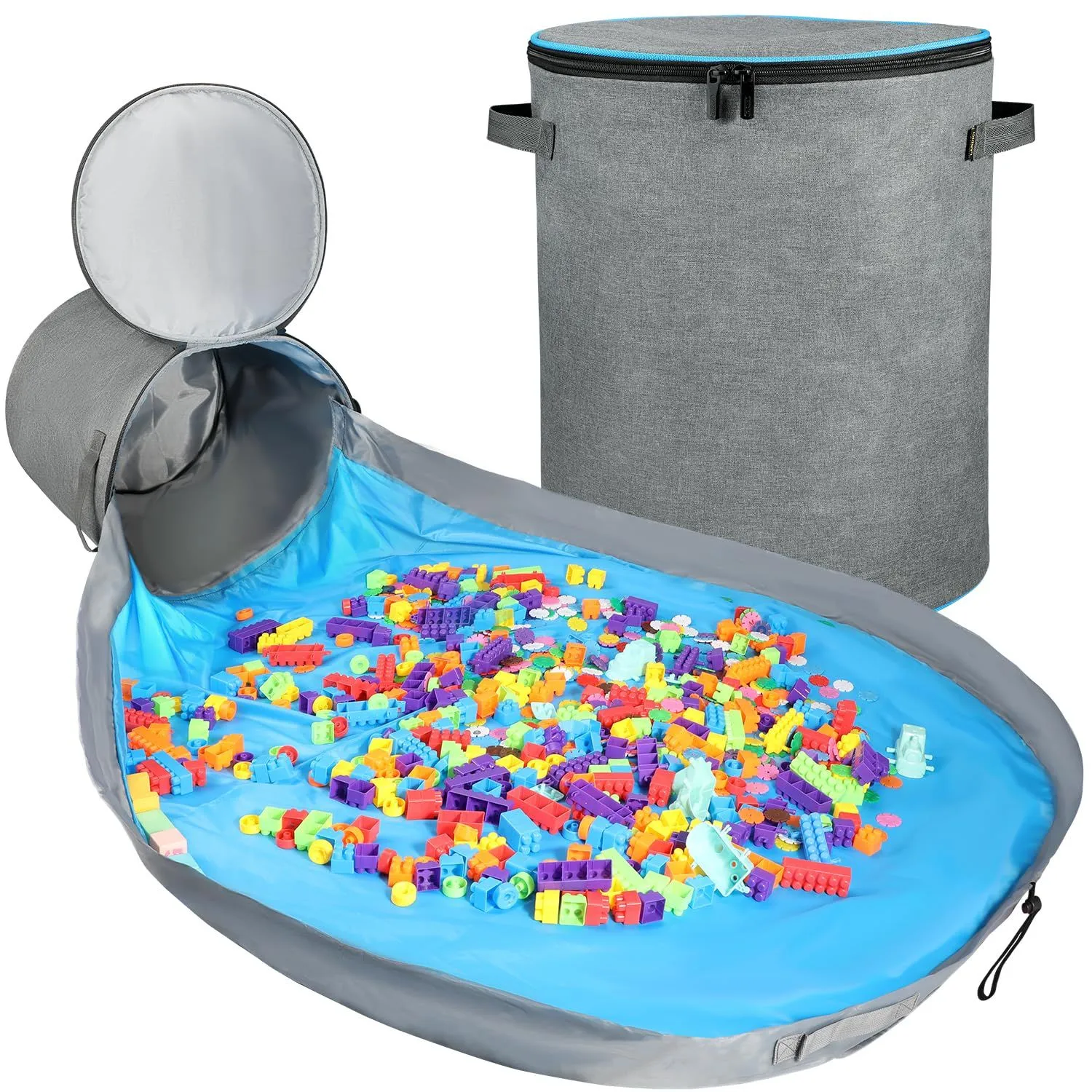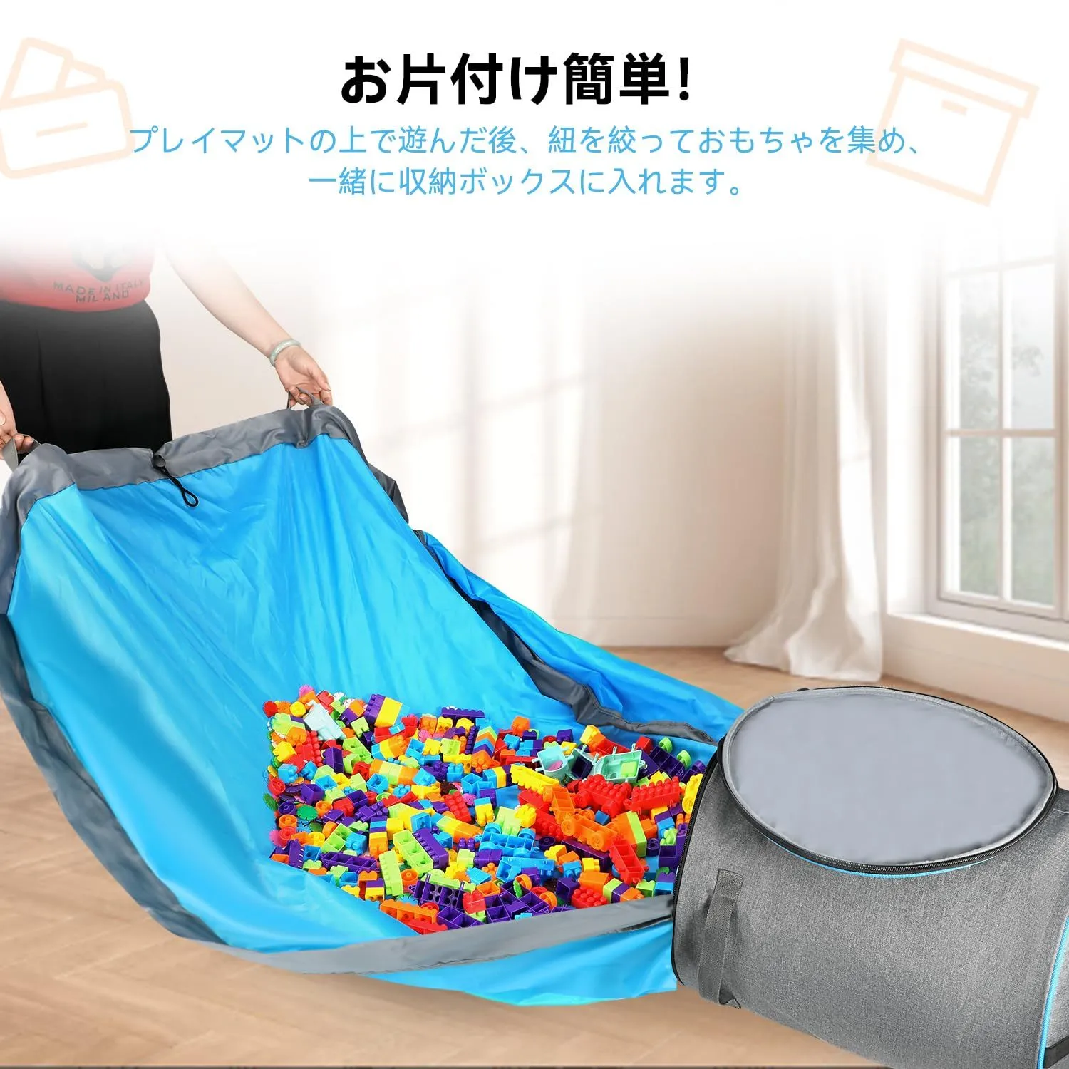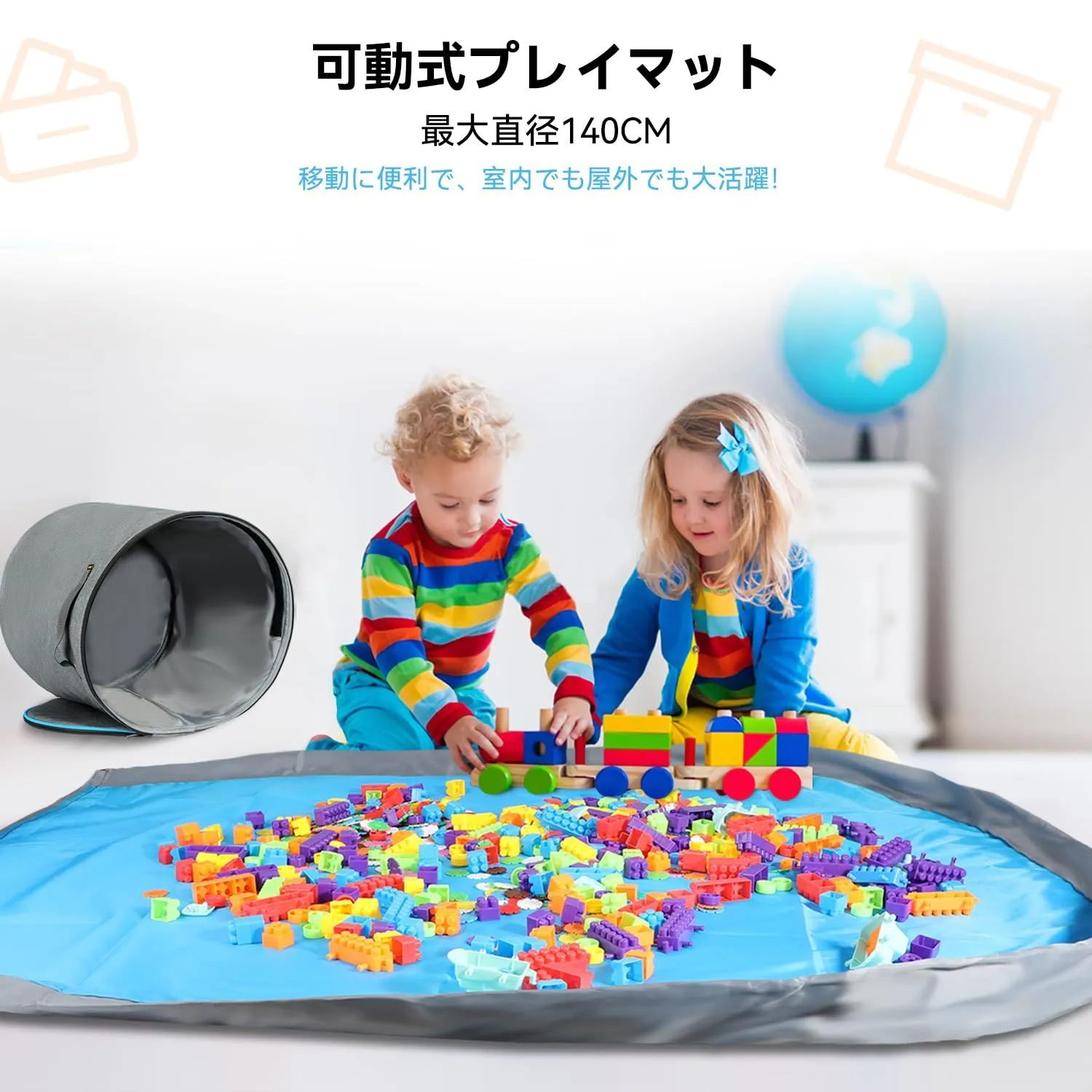 LANDICI おもちゃ収納ボックス+プレイマット 子供おもちゃ収納 折り畳み式 玩具収納バッグ 直径140cm レゴマット 赤ちゃん玩具収納袋 ブロック収納 お片付け簡単 大容量 収納用品 洗濯可能 自宅 外遊び 出産祝い 誕生日プレゼント(ライトグレー)