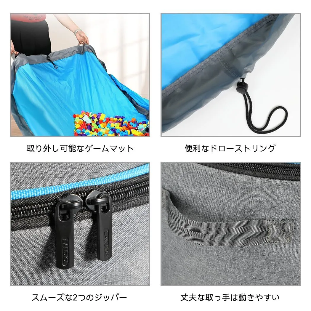 【片付け簡単】ゲームマットはおもちゃ収納ボックスから取り出して、家の床の上に広げて、赤ちゃんはこの上で遊ぶことができ、遊んだ後はあと紐をキュッと絞めるだけで小さな積み木を収納バケツに入れるだけです。特に積み木などのパーツが小さいおもちゃは整理しやすく、おもちゃの部品の紛失も防止して、大人も子供もおもちゃを簡単に整理して片付けるのに便利です。取っ手付きなのでお子様でも持ち運びが簡単です。