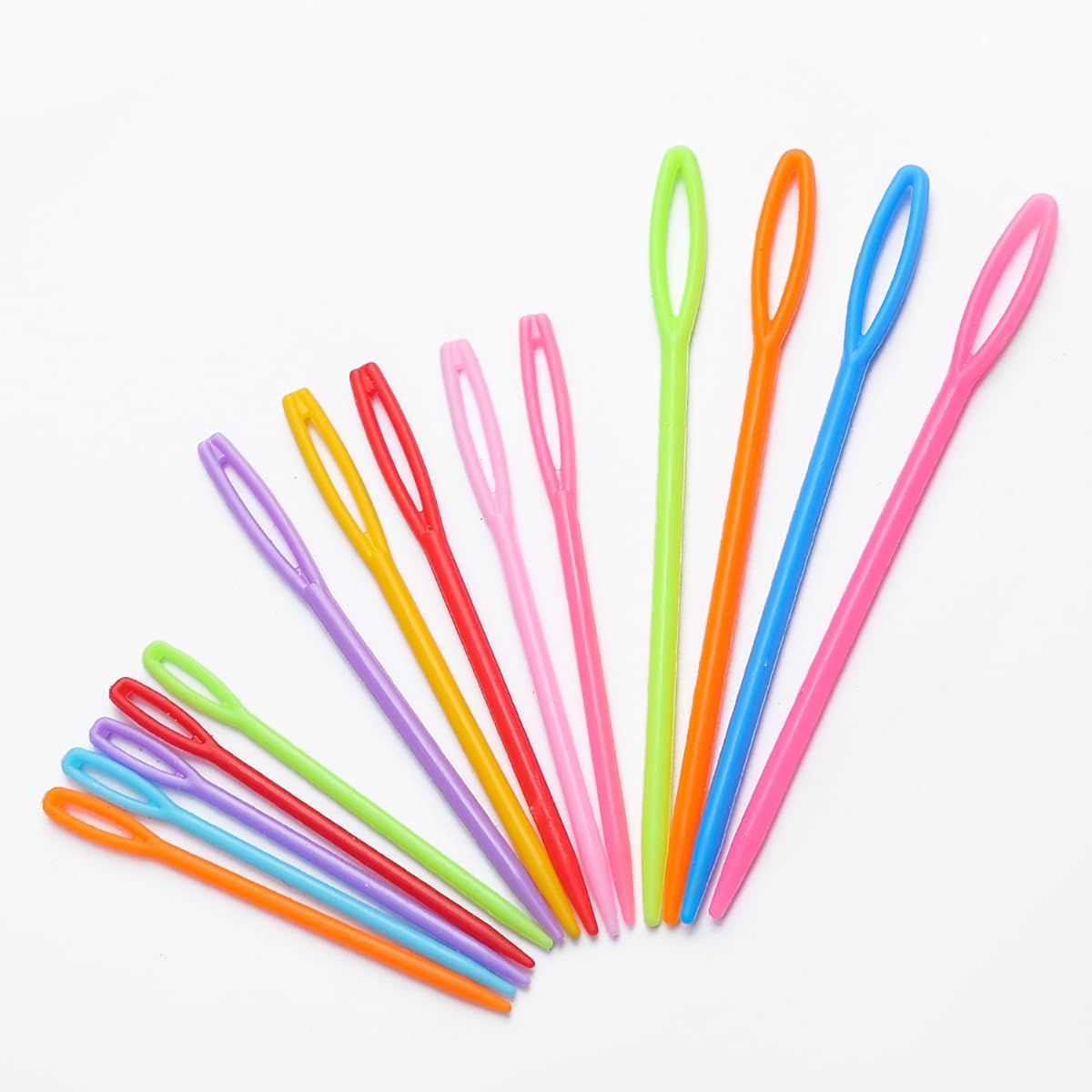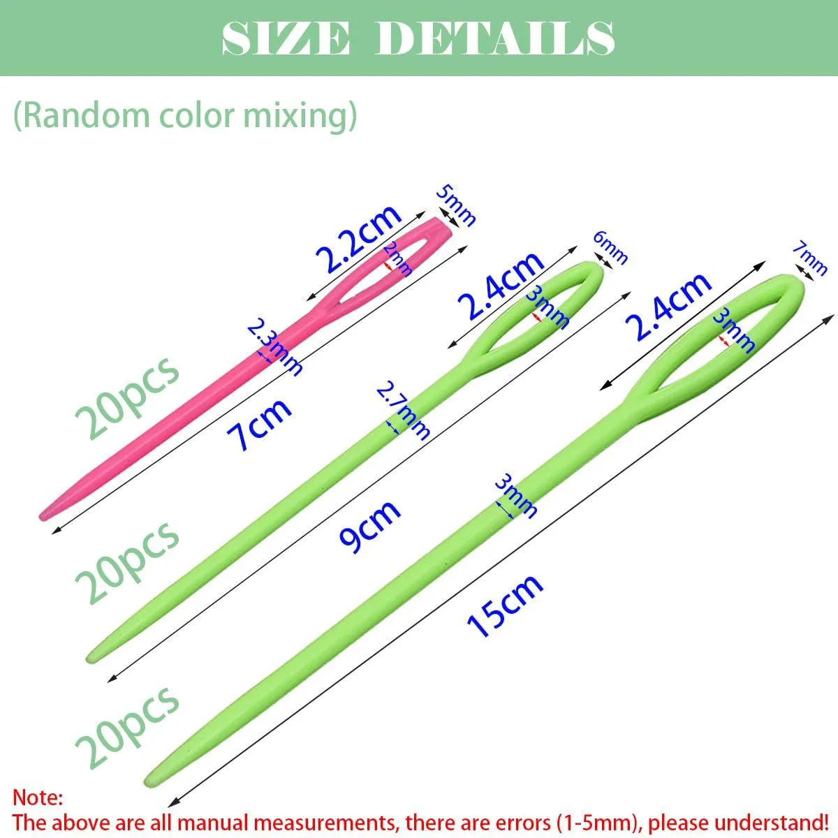 【在庫処分】プラスチックミシン針 大型プラスチック針 Dujelixa ジャージ針 手縫い ランダムに色を混ぜる 7cm/9cm/15cm 子供用プラスチック針 刺繍針 子供用 (60本パック)