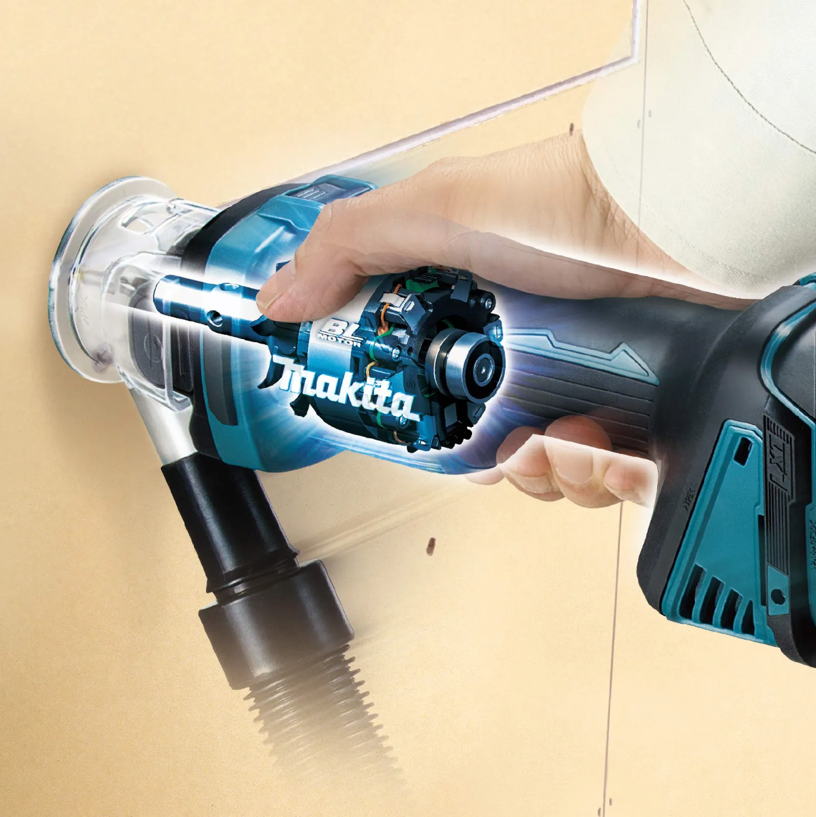 AC機を超える作業能率(当社AC機比)、スピーディに「石こうボード」を切り抜く
