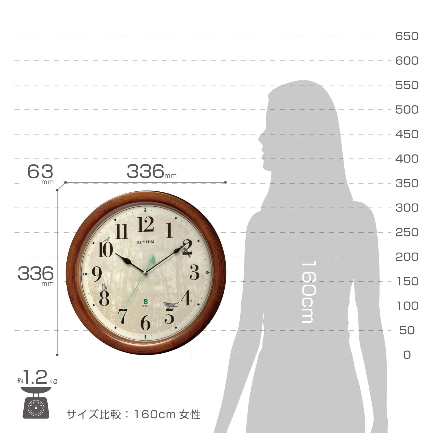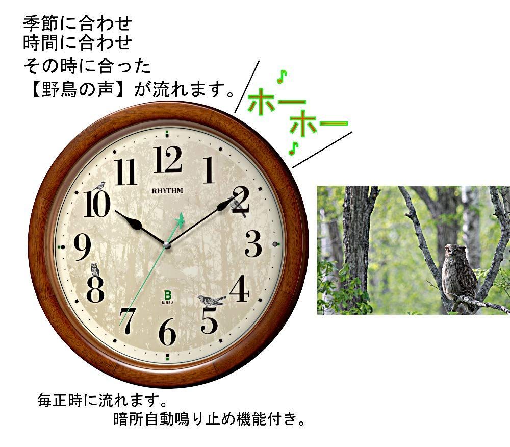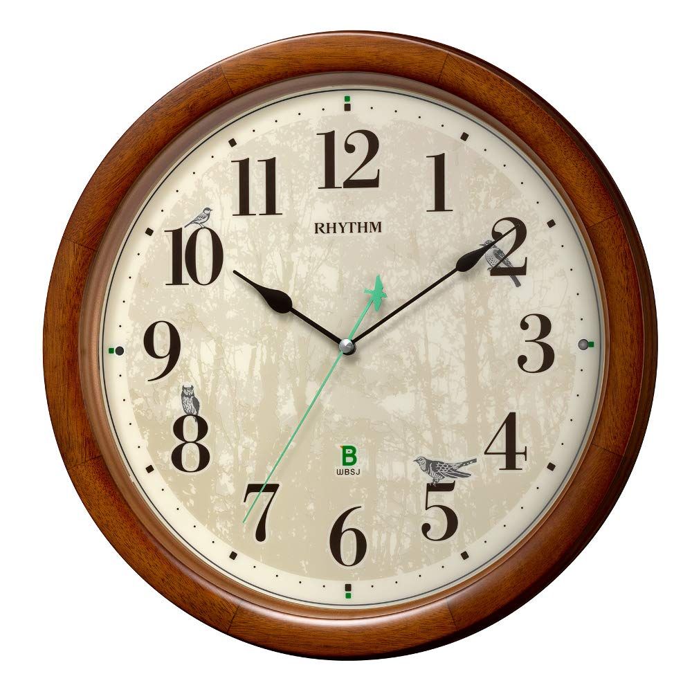 新品 リズム(RHYTHM) 掛け時計 電波時計 アナログ 連続秒針 メロディ 日本野鳥の会 共同開発 茶色 Φ33.6x6.3cm 8MN408SR06