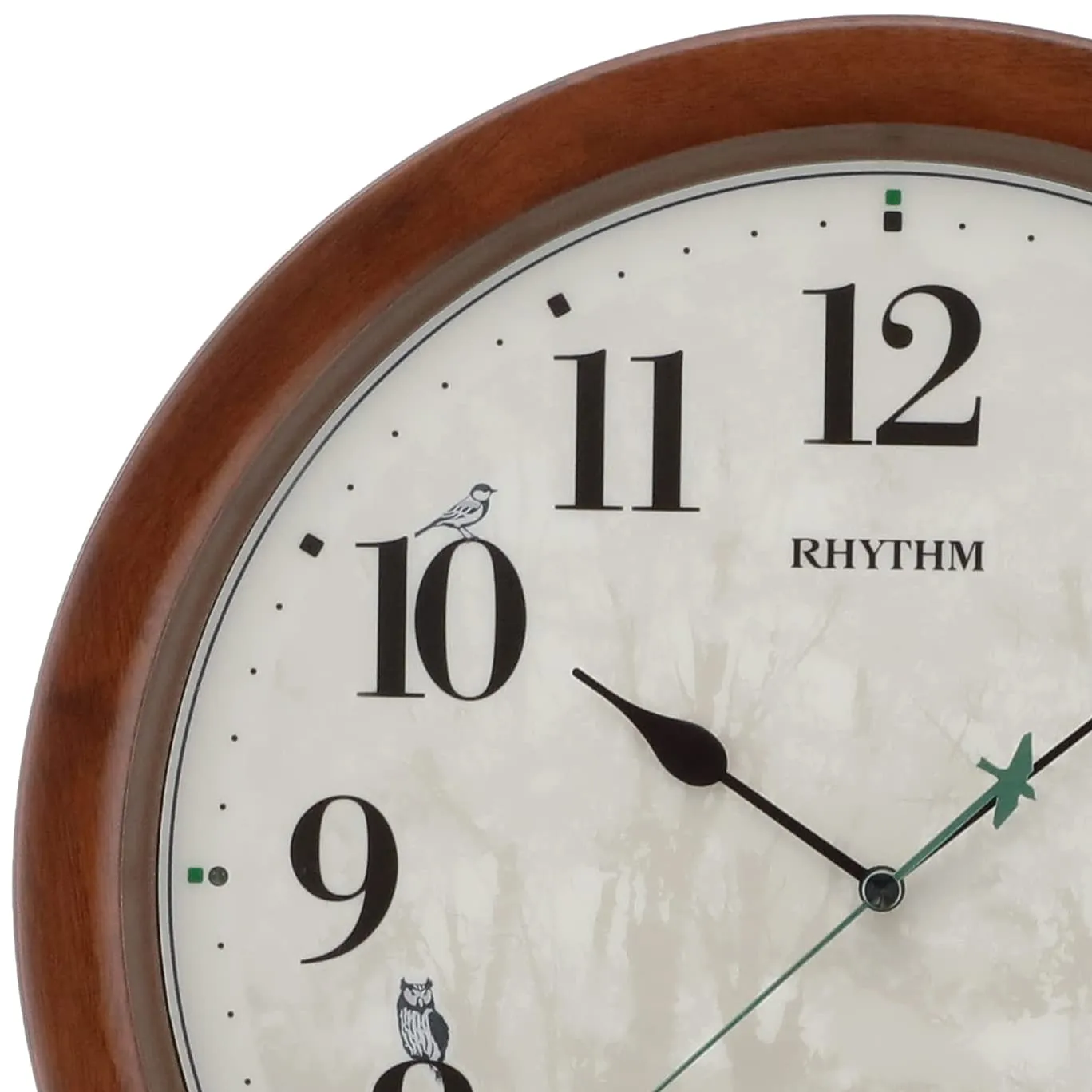 リズム(RHYTHM) 掛け時計 電波時計 アナログ 連続秒針 メロディ 日本野鳥の会 共同開発 茶色 Φ33.6x6.3cm 8MN408SR06