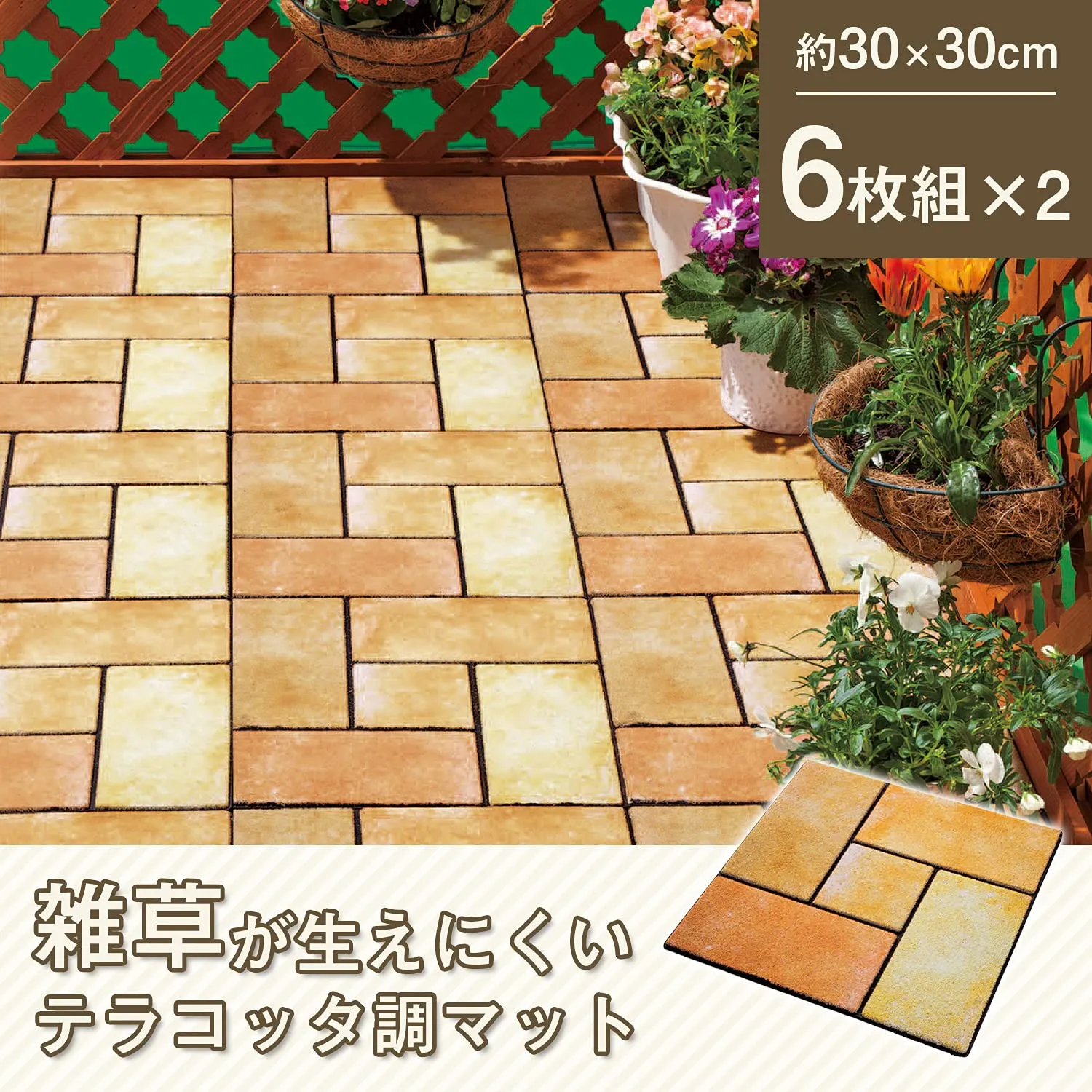 雑草が生えにくいテラコッタ調マット6枚組×2 置くだけ 庭 玄関マット 防草 カット可