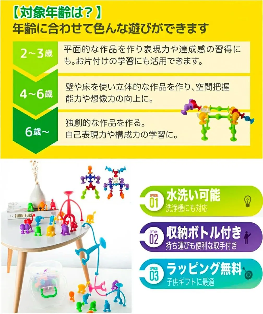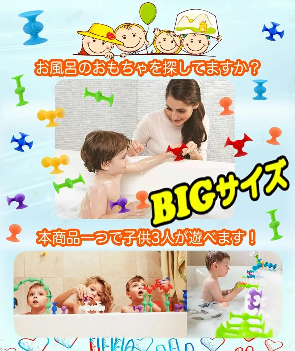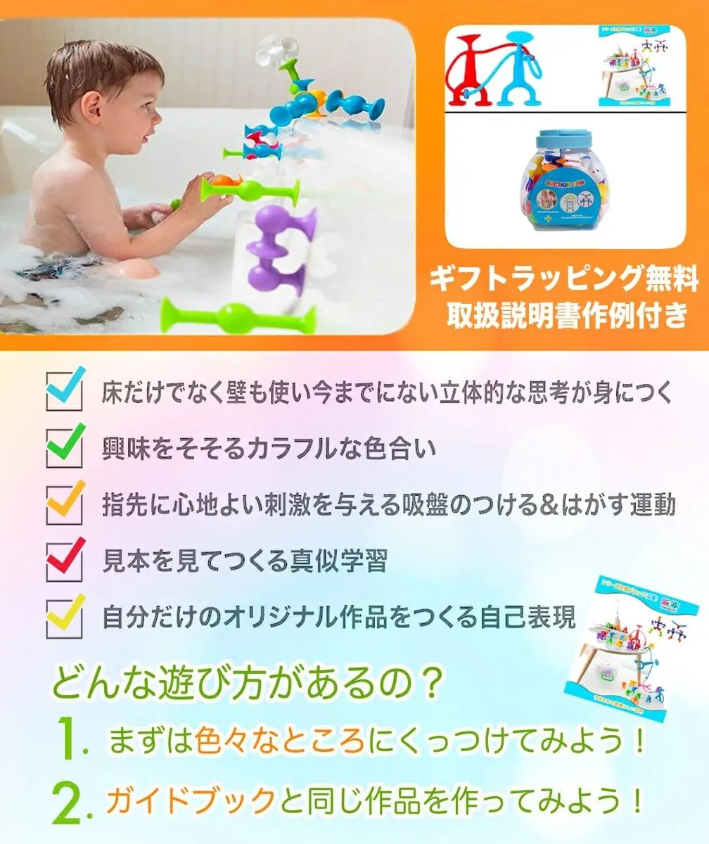 【赤ちゃん用お風呂 玩具】粘着おもちゃは、非多孔質の表面や互いにくっつく理想的な吸盤式幼児学習おもちゃです。組み立てて、くっつけて、つなげて、弾けます。この小さな吸盤を分解して何時間も楽しめます。