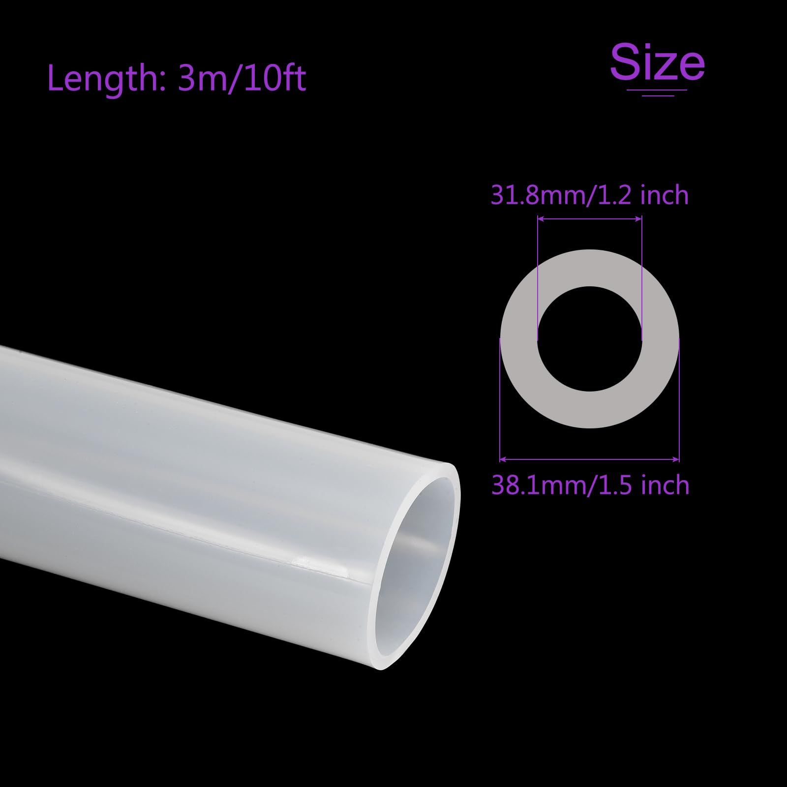 DMiotech シリコンチューブ 透明プラスチックチューブ、内径31.8mm(1 1/4インチ) x 外径38.1mm(1.5インチ) 長さ10ft(3メートル) シリコンチューブ 柔軟ホース