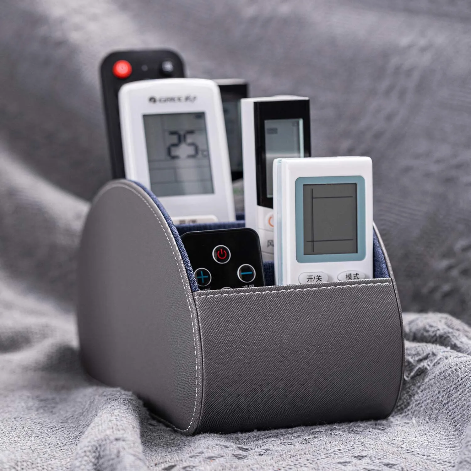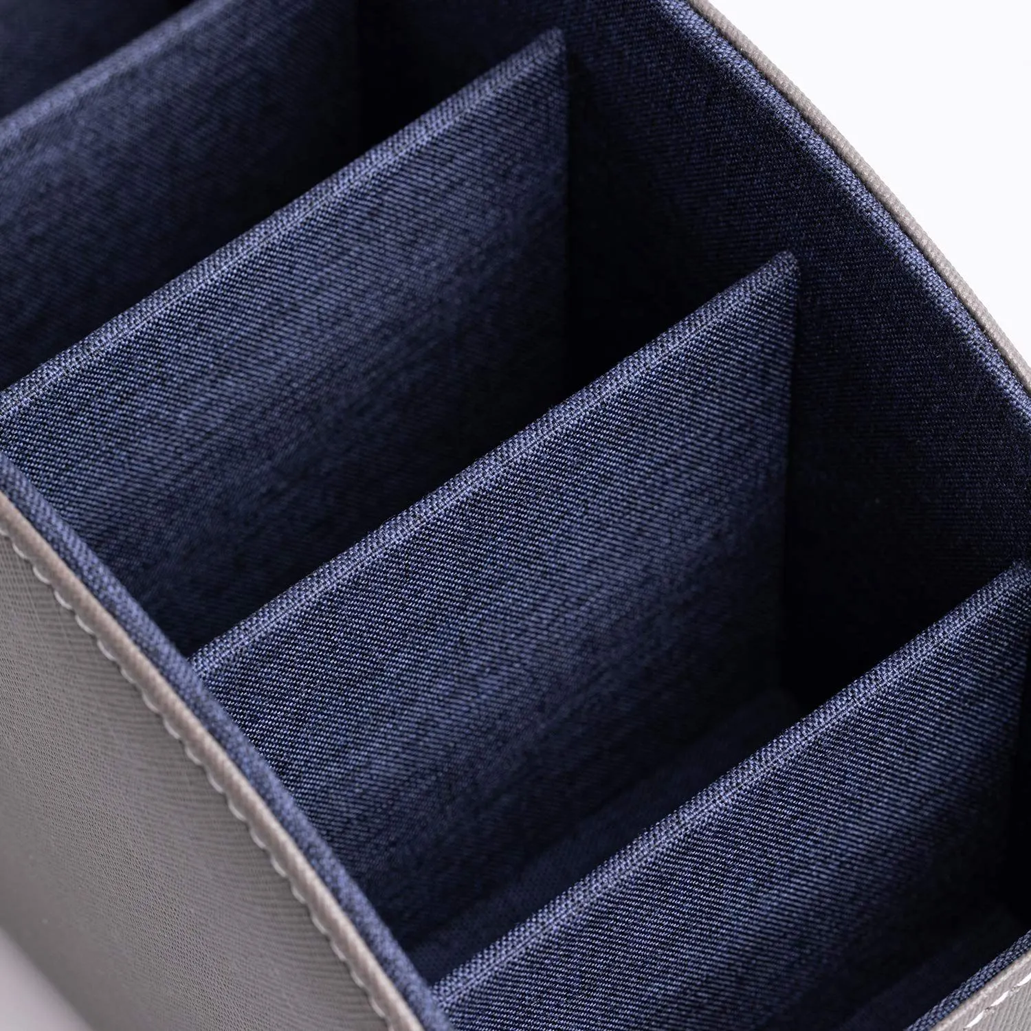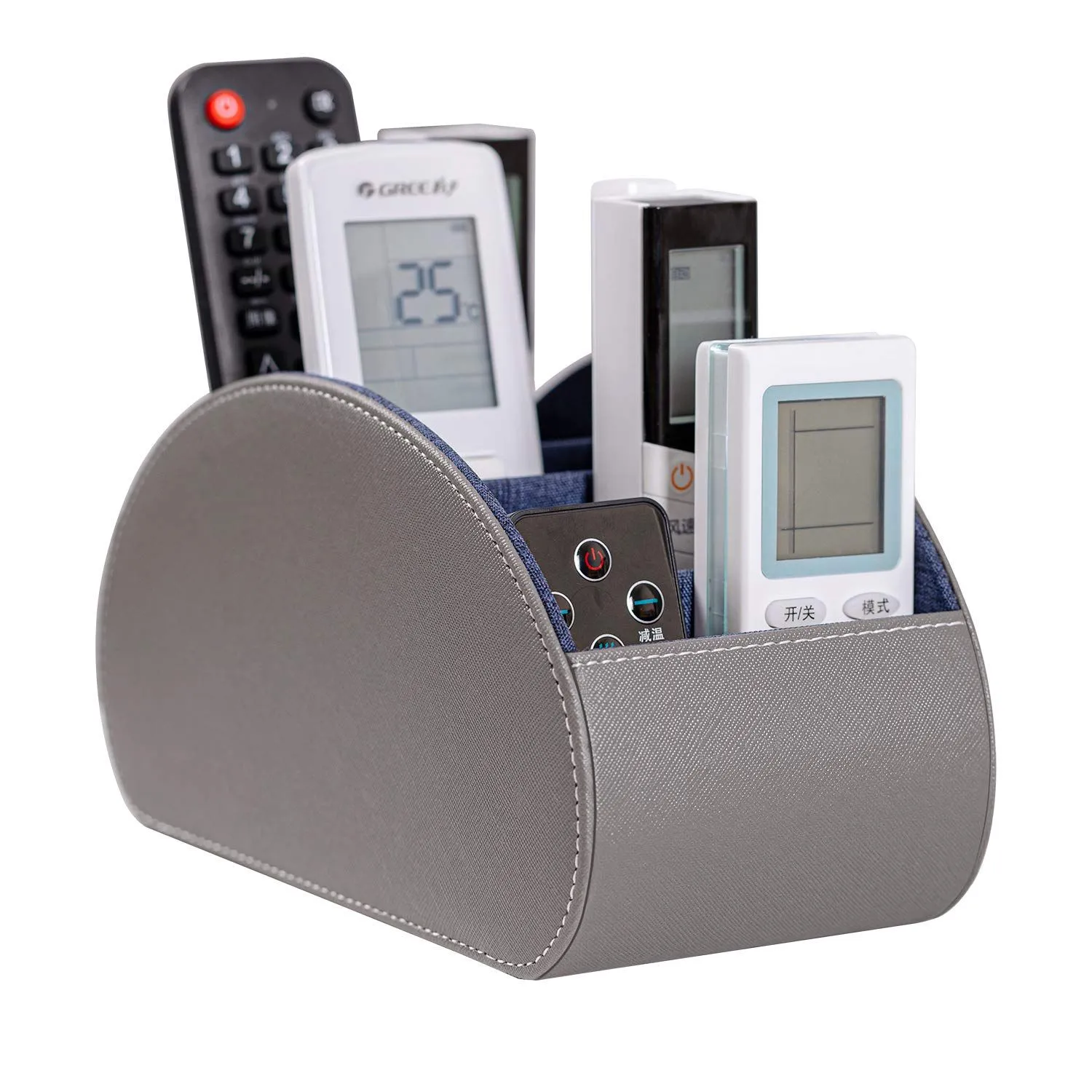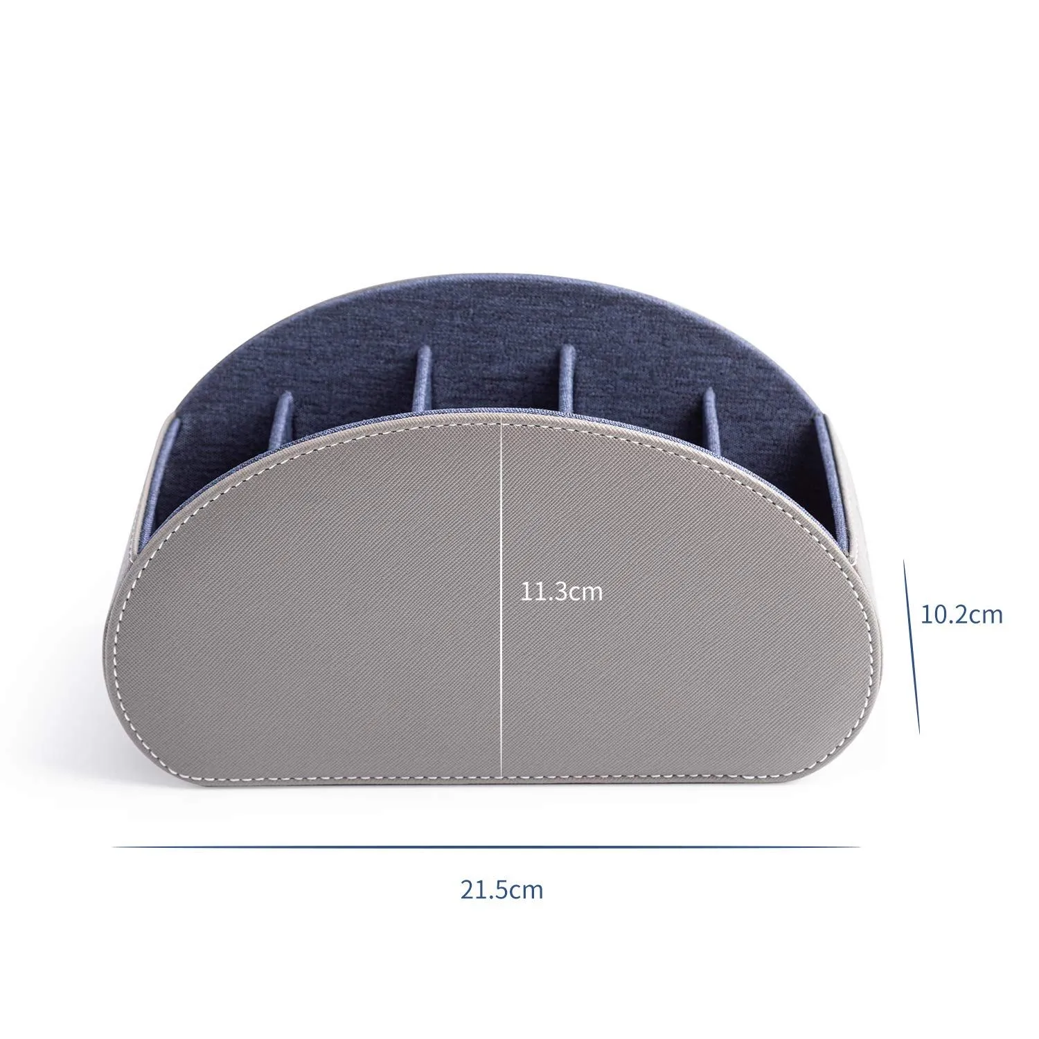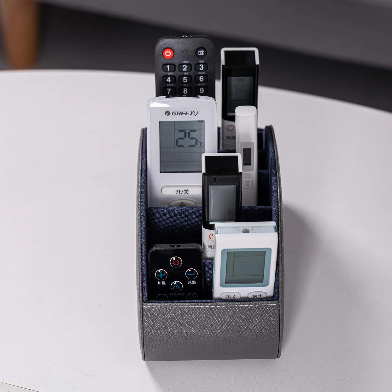 【在庫処分】テーブル 5格仕切り リモコン収納 リモコンスタンド おしゃれ 防水 大きいサイズ 多機能収納ボックス 大容量 PUレザー 文房具 卓上小物 リモコンラック (グレー ベーシックモデル)