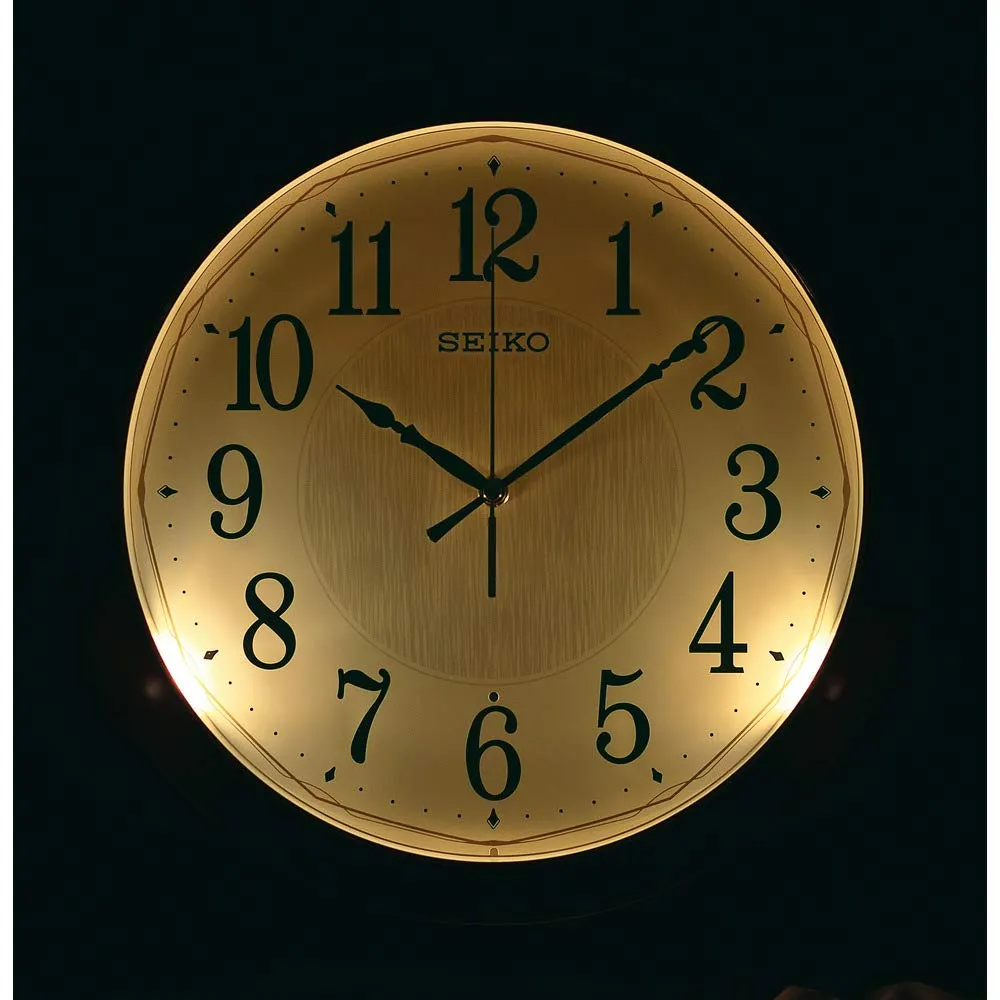 新品 セイコークロック 掛け時計 電波 濃茶木目模様 光沢 直径33×4.6cm KX260B