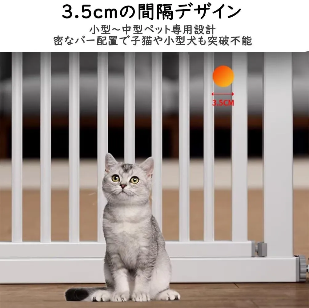【3.5cm間隔デザイン】3.5cm間隔のバーが採用され、子猫や小型犬も突破不能でペットの脱走リスクを大幅に低減し、安心してご使用いただける製品です。