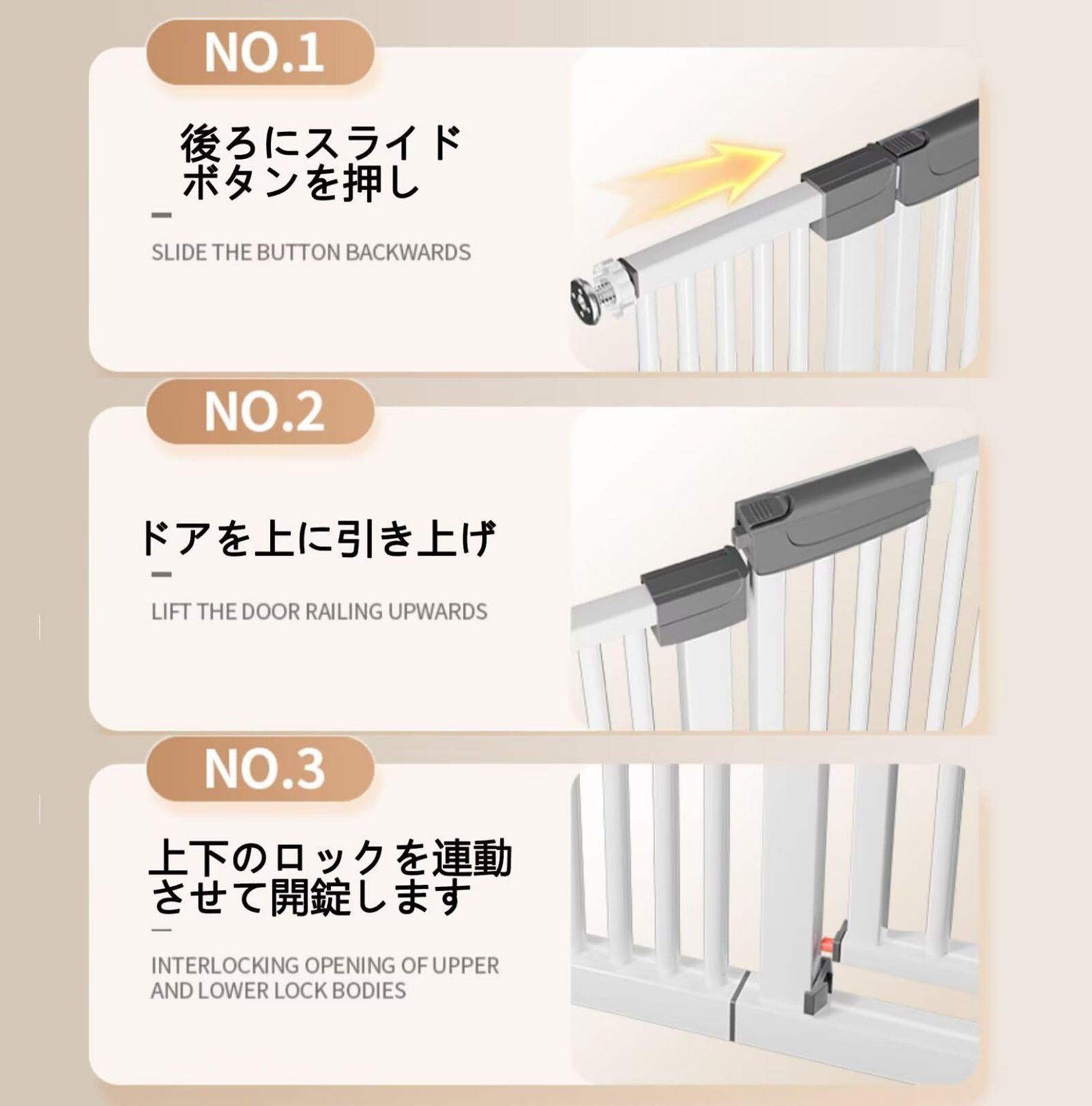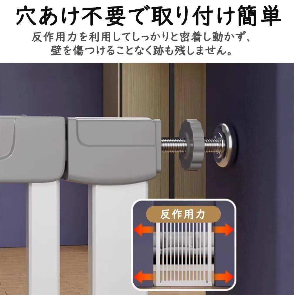 【自動ロック】通過後にドアが自動でロックされ、不注意や操作ミスによる誤開放が防止され、ペットの脱走や不意の侵入を防ぎ、飼い主の手間を省きます。 安全性と利便性を兼ね備えたペットゲートです。取り付け幅69.5-83cmに対応し、高さは80cm、100cm、120cm、150cm、170cmから選択可能。穴あけ不要で簡単に設置でき、玄関やドア、階段などさまざまな場所に使用できます。3.5cm間隔の柵で、小型のペットの脱走を効果的に防止します。両開きタイプで、自動ロック機能付きなので、片手で開閉できて便利です。ペットの安全を守りながら、ご家族の生活動線を妨げません。耐久性のある素材を使用し、長期間の使用に耐えられる設計です。ペットとの快適な暮らしをサポートする実用的なアイテムです。 配送について、商品のサイズや配送先都道府県によって最適な配送業者を選択しております。 業者・配送方法の指定は承れません。ご了承ください。 万が一の不着、紛失、誤配送の場合など、最後まで責任もって対応致しますのでご安心下さい。 宜しくお願い致します。