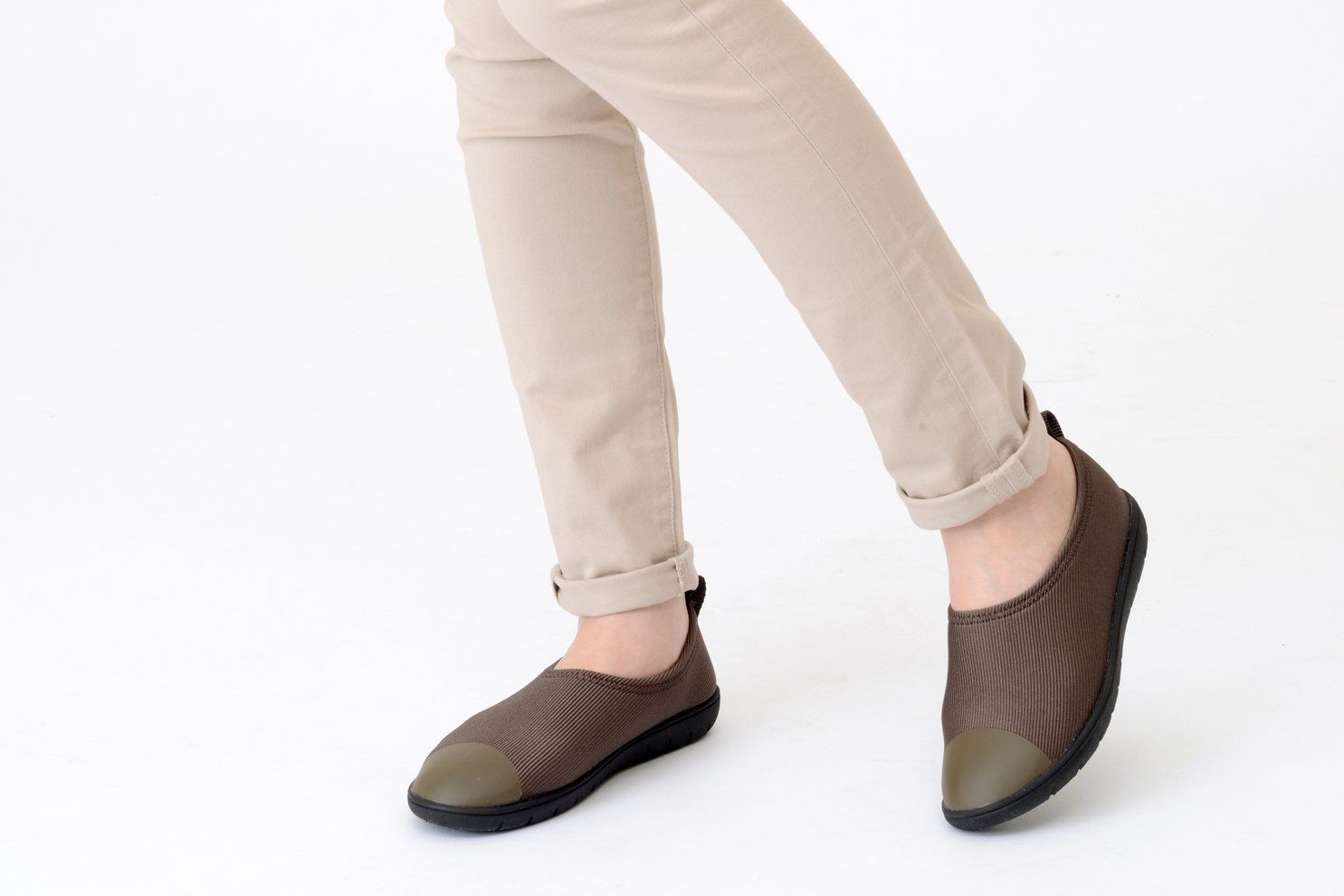 甲表素材に伸縮性のあるリブストレッチ素材を使用。足の形状にフィットして広がり、優しい履き心地。