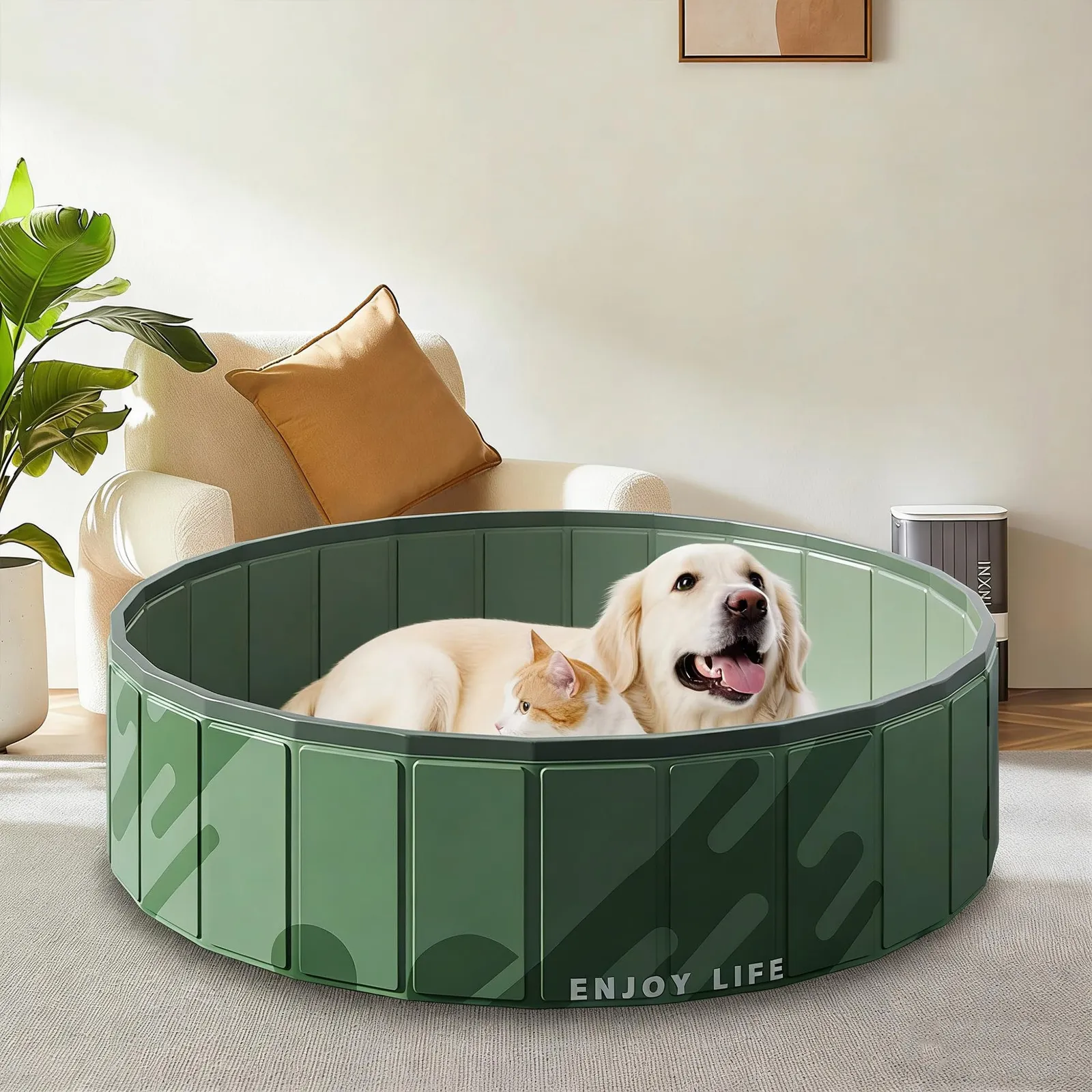 Hyindoor ペット用プール 空気入れ不要 折りたたみ式 犬/猫用 80*20cm 水遊び/シャワー 暑さ対策 収納便利 ビニールプール 家庭用 ベランダ (ダークグリーン)