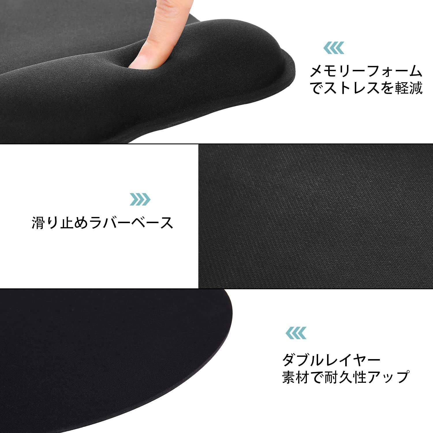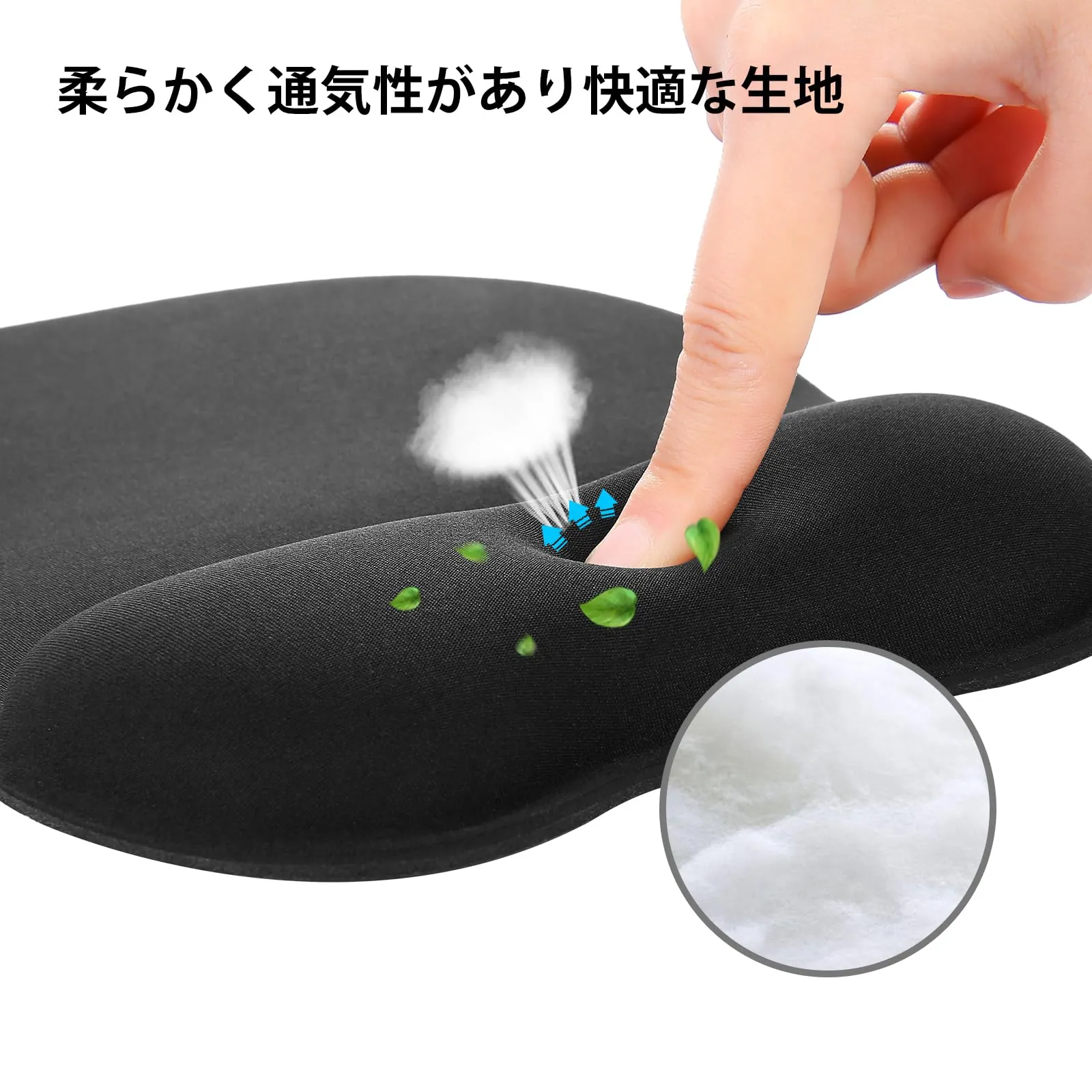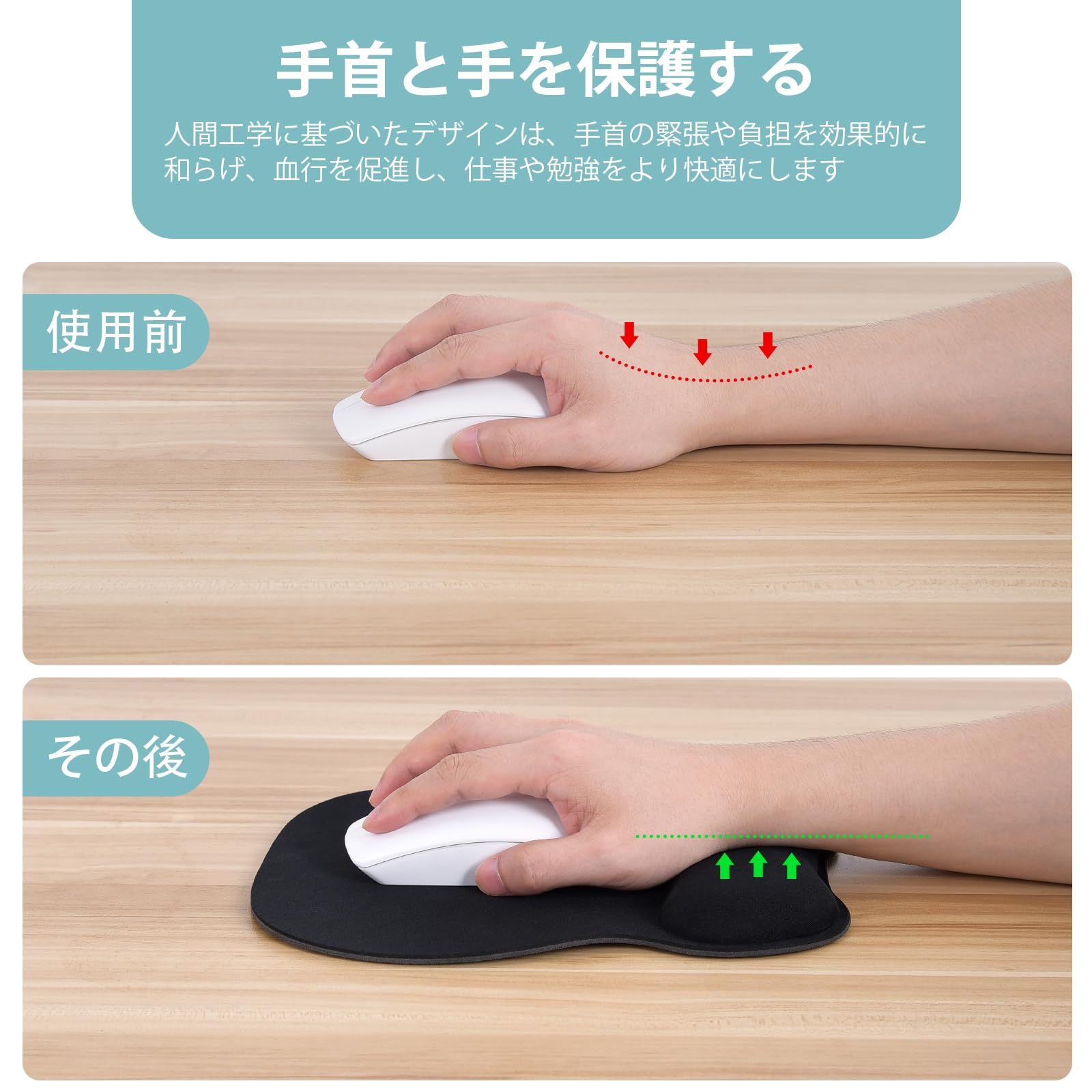 【在庫処分】色落ちしない、デスクトップ、自宅、ノートPC、やオフィス、ノートパソコン、旅行、インターネットカフェ用 汚れにくく耐久性 洗える 無臭 - 低反発快適でソフトシリコンベース滑りにくい 疲労を軽減 リストレストマウス ブラック 手首サポート付き人間工