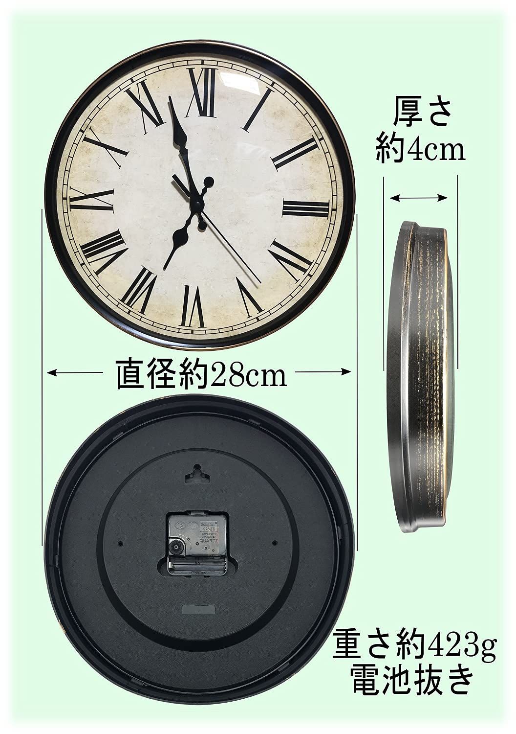 アンティーク、レトロ、クラシック、北欧調のアナログクロックです。文字盤の数字はブラックのローマ数字を採用し見やすくなっています。お部屋のインテリアとしてヴィンテージでおしゃれな雰囲気を演出できます。