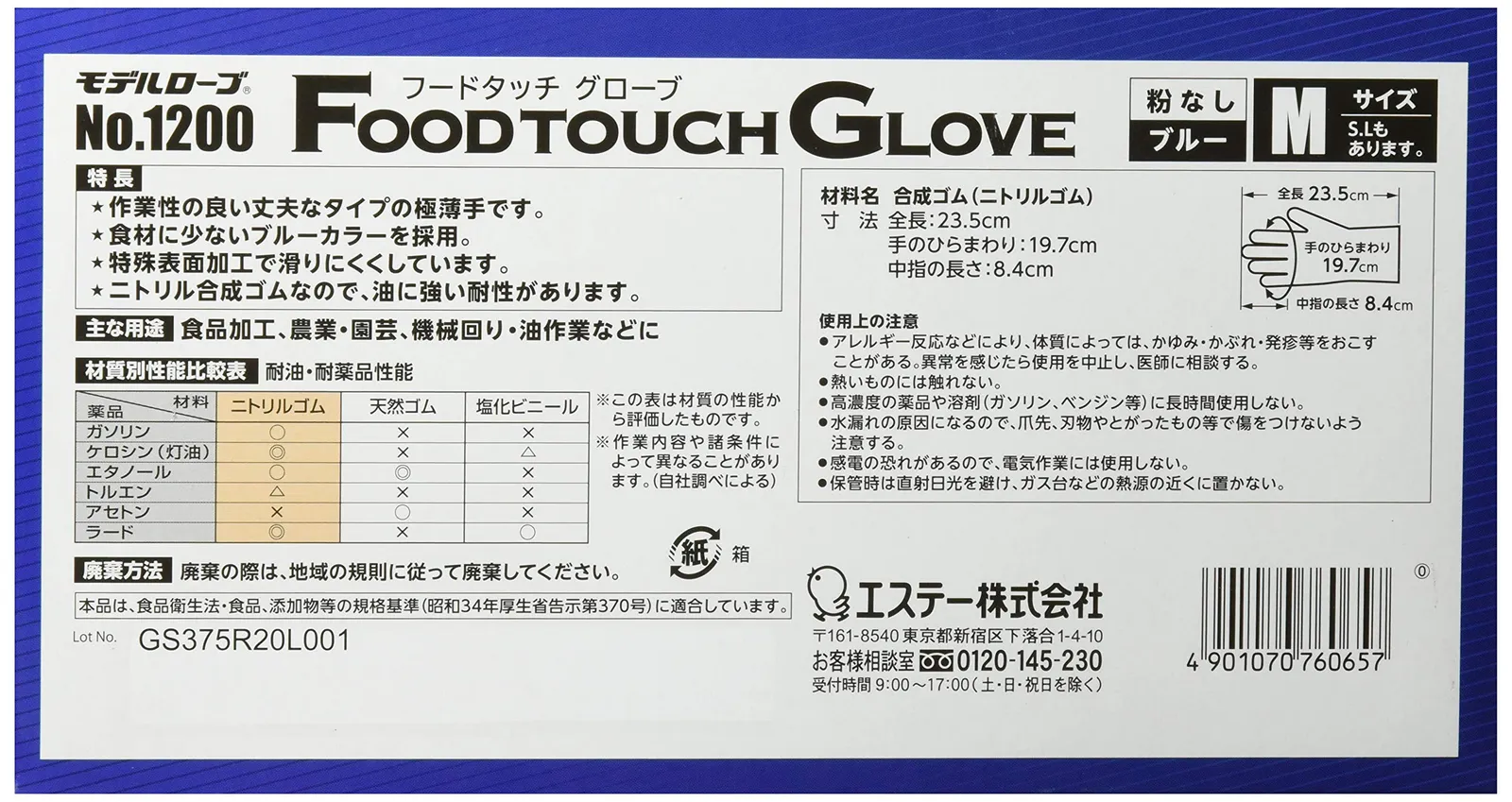 エステー No.1200フードタッチグローブM 50枚入 ST76065