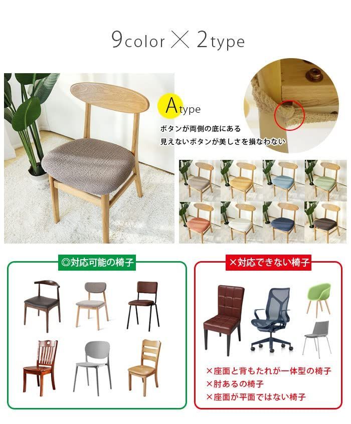 【ボタン付タイプ、取付簡単】 本体をしっかり包み込むよう、フチにゴムひもがついております。肌触りがよく、快適にお使いいただけます。 椅子の座面にカバーをかぶせるだけでボタンをつけて一瞬で簡単に取り付けることができます。伸縮性が優れて取付や取り外しが簡単で変形しにくいです。