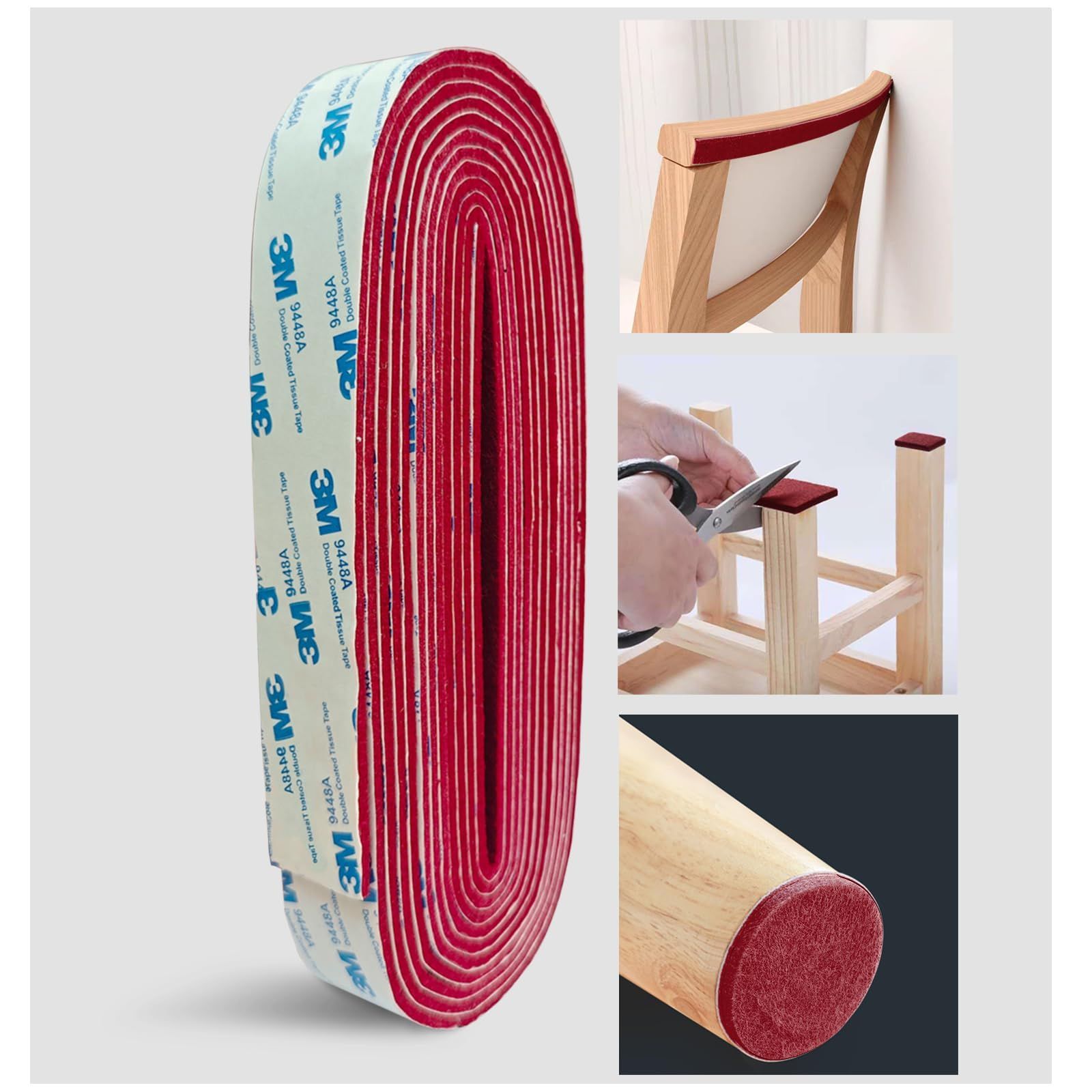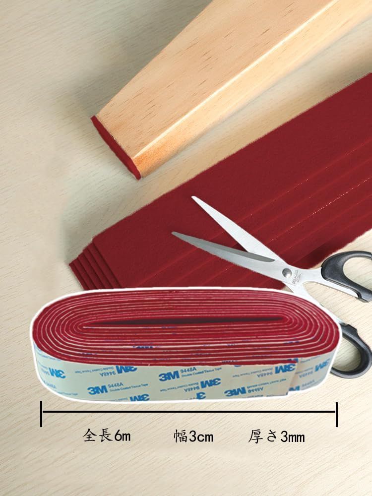 家具保護パッド 滑り止め DIY 3cmx6m フェルト 椅子の脚 カバー 床傷防止シート 椅子 足 傷防止 テーブル 滑り止め マット ト キズ防止・防音 (ワインレッド, 3cmx6m)